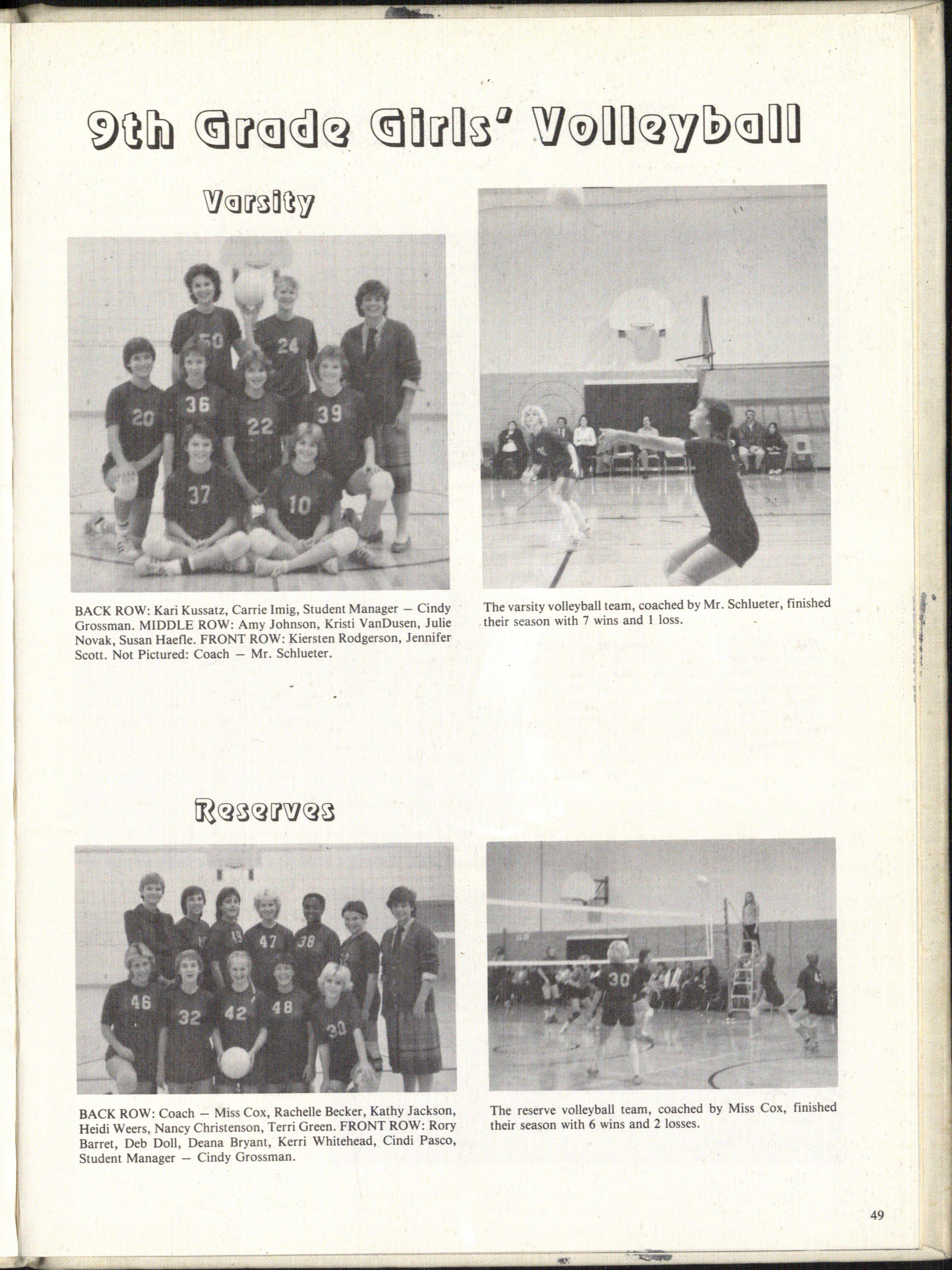 BACK ROW: Coach - Miss Cox, Rachelle Becker, Kathy Jackson, Heidi Weers, Nancy Christenson, Terri Green. FRONT ROW: Rory Barret, Deb Doll, Deana Bryant, Kerri Whitehead, Cindi Pasco, Student Manager - Cindy Grossman.