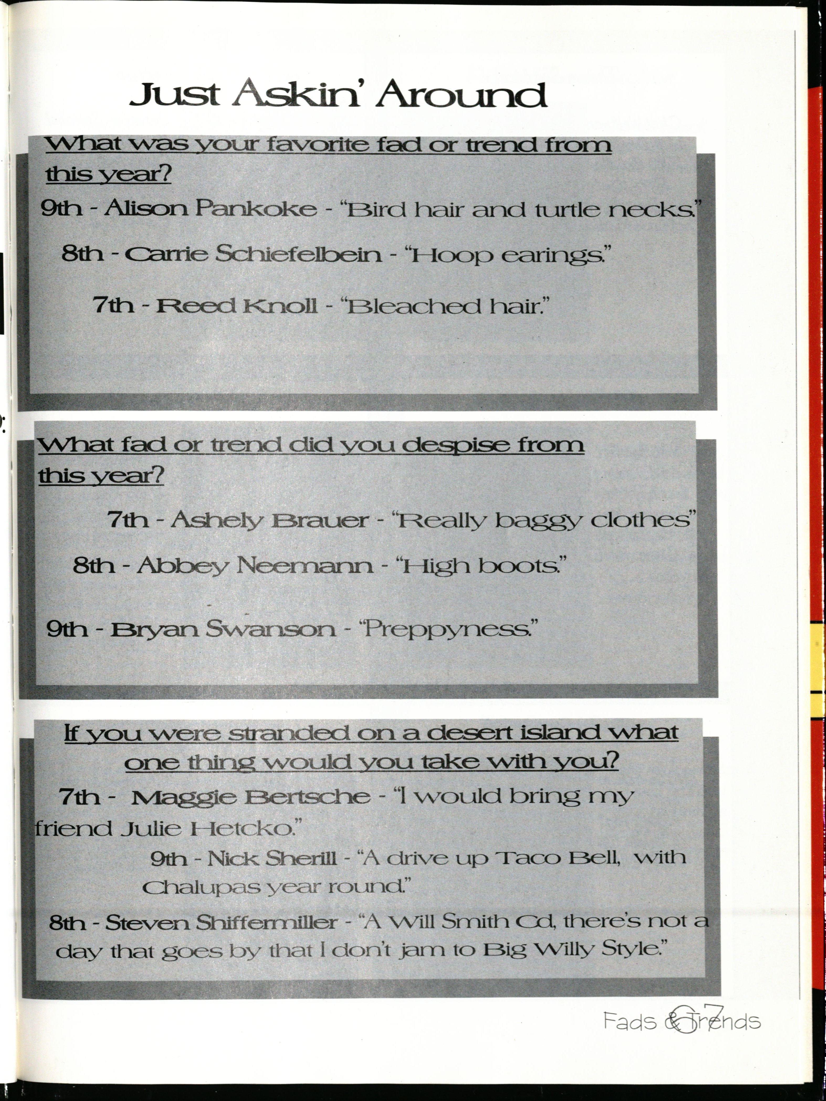 Abo\1Q. : 1 ana Anna ju:;t- han9rn' around. " L et's see, 1-Y\}' f il"st kiss w a s ii'\ 4th 9l"ade to P a t W a lke !" a t the swil'Y\1-Y\il'\ 9 pool. " Jessie t-l el"Z