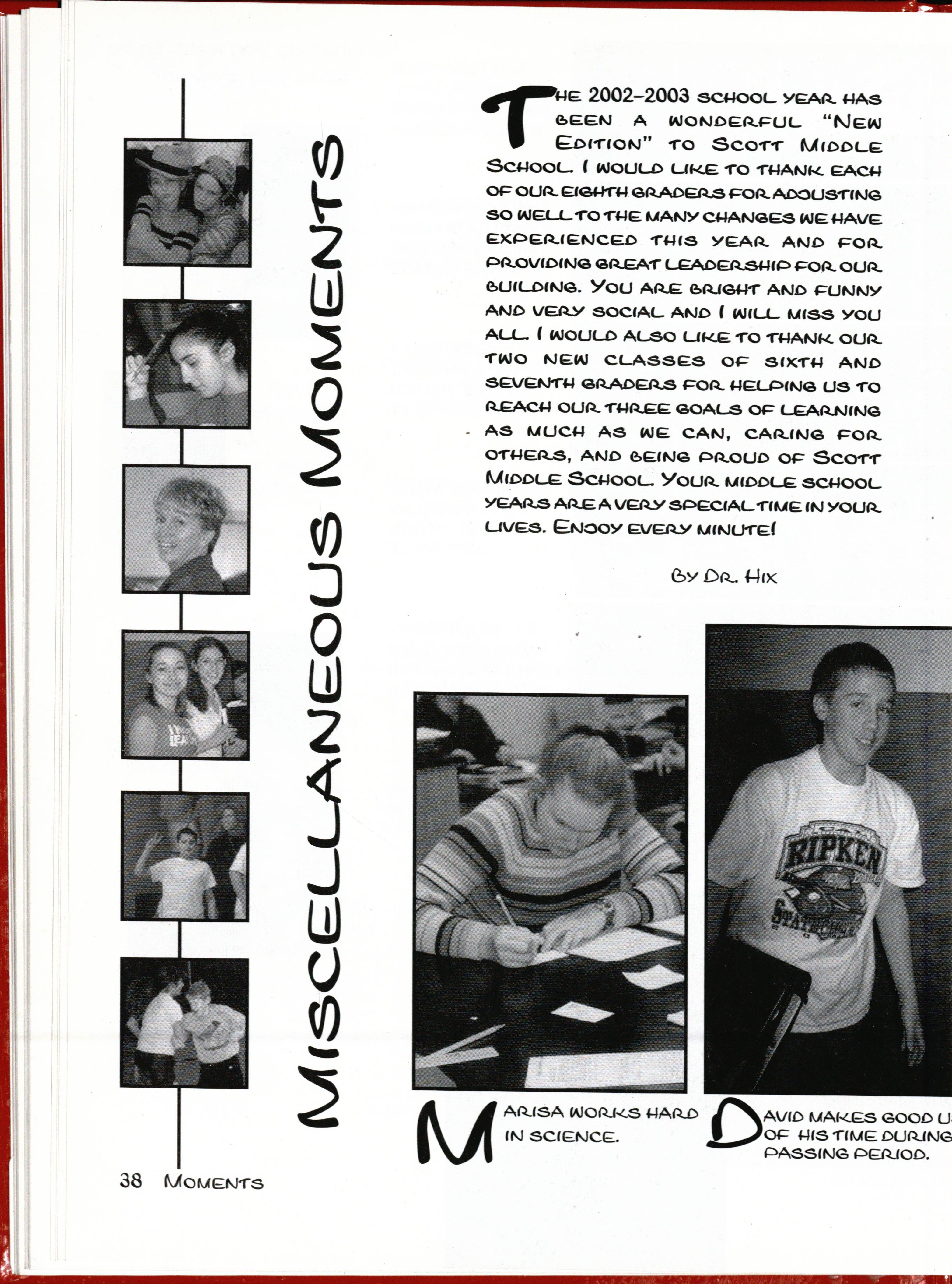 This year, Scott Middle School experienced many small "edits" that made a big difference. This was our fir t year a a true middle school , going from grades seven eight, and nine to grade six, even, and eight. We welcomed several new students, teacher , and even a new principal. Some of our rule and procedures were modified as well. After all the