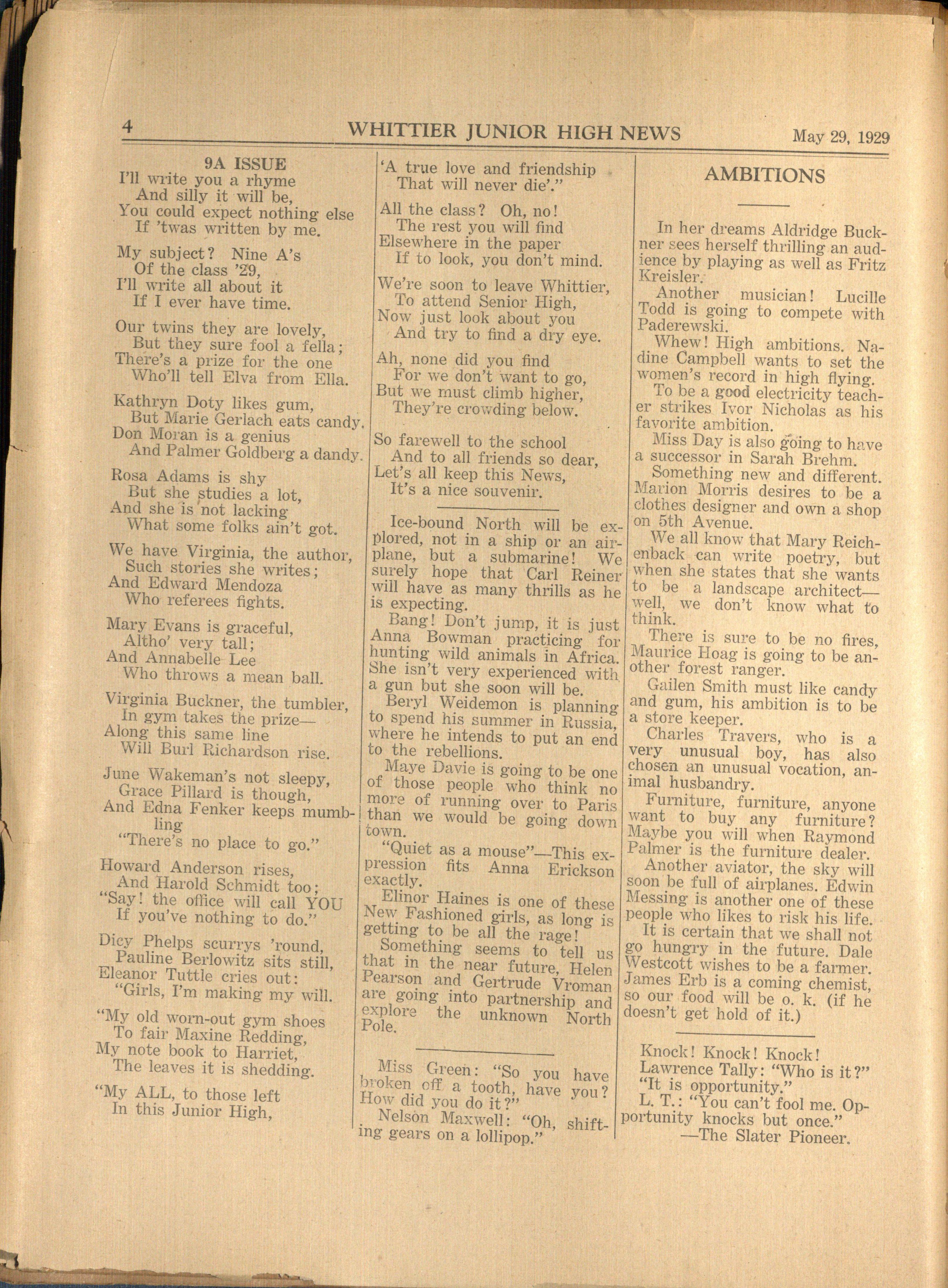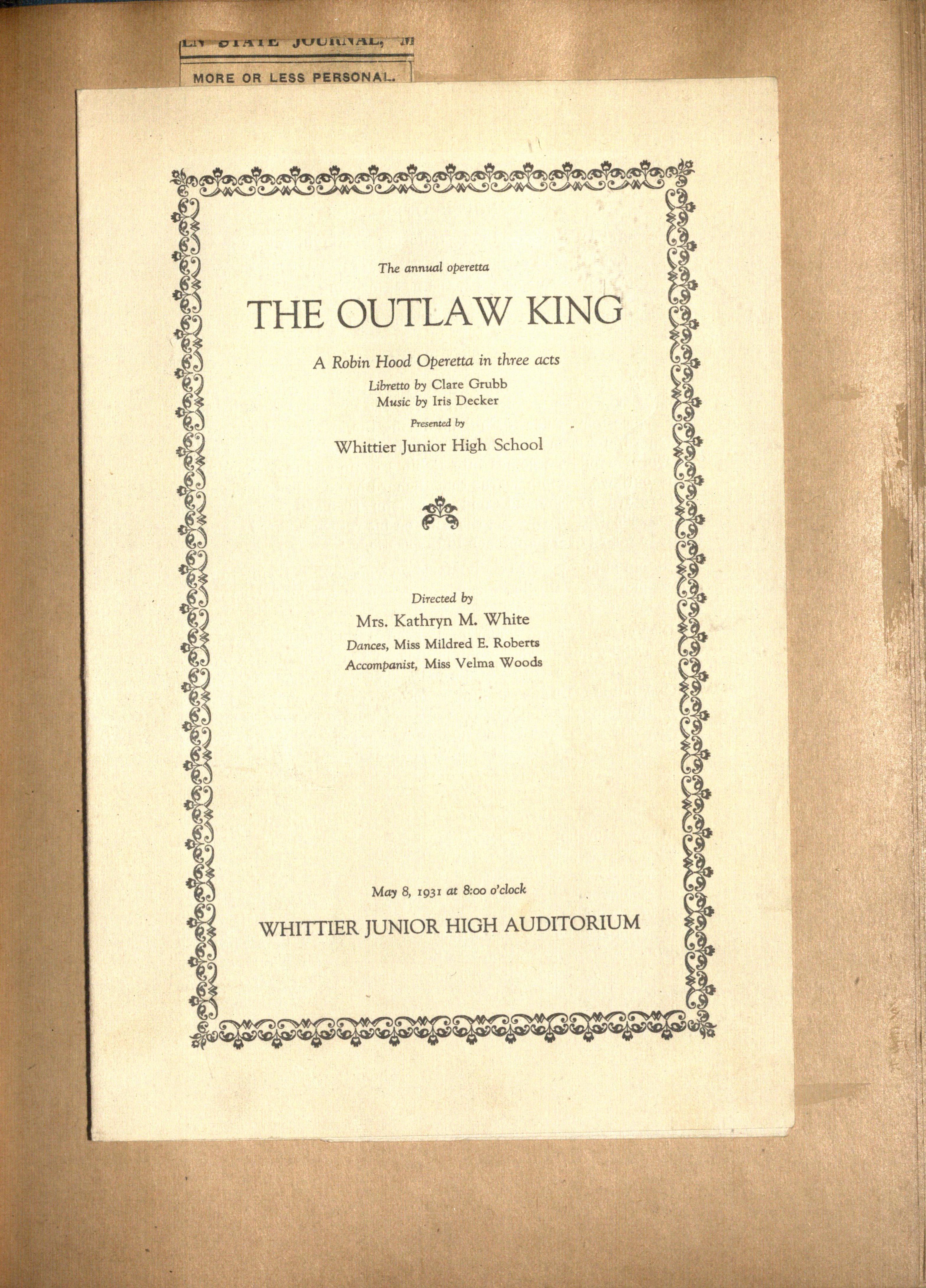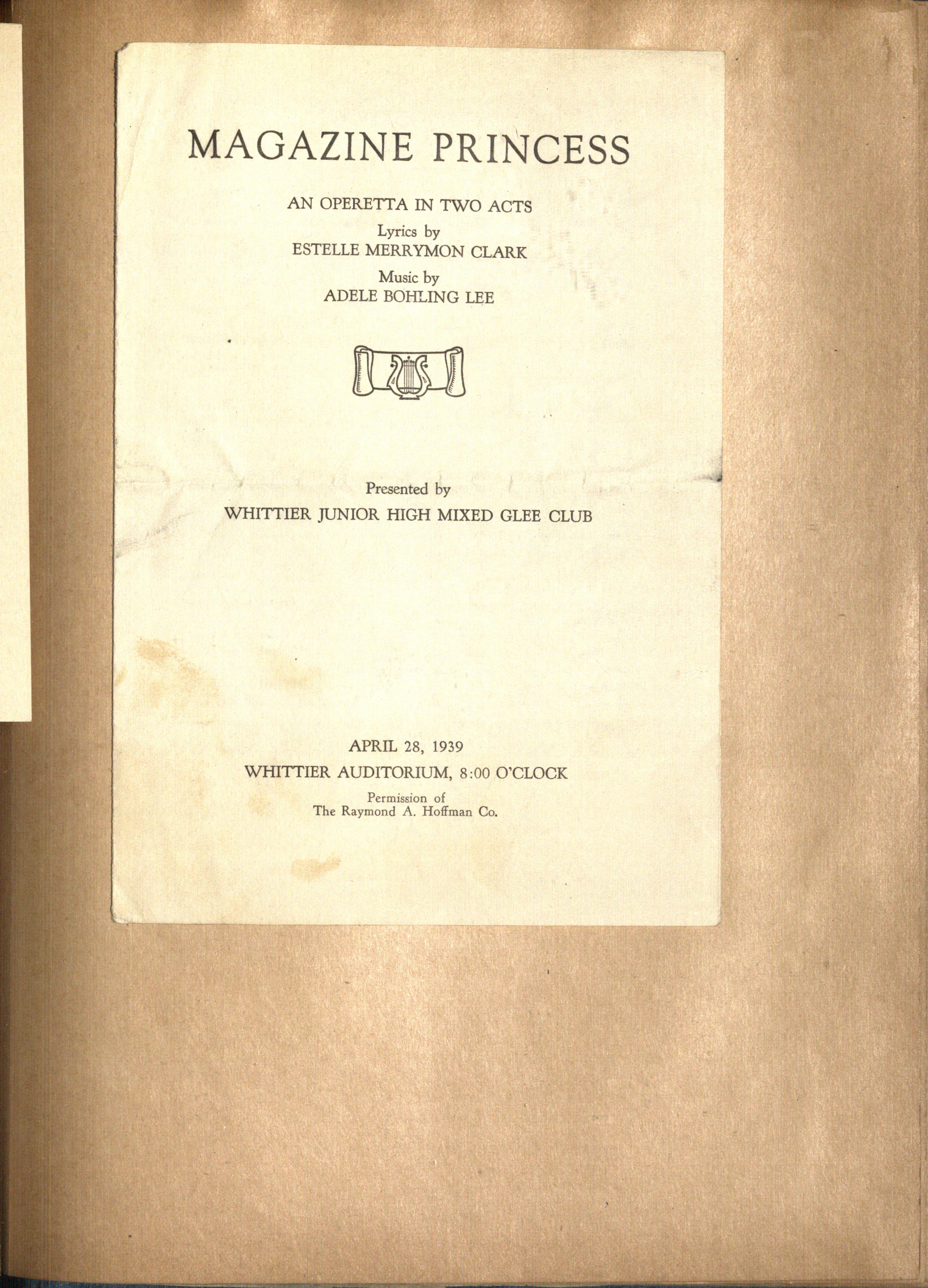 The operetta "Once in a Blue 1Moon," given by the Whittier junior high school gl e clubs wa attended by over a thousand people, the audi· ence filling the Whittier junior high