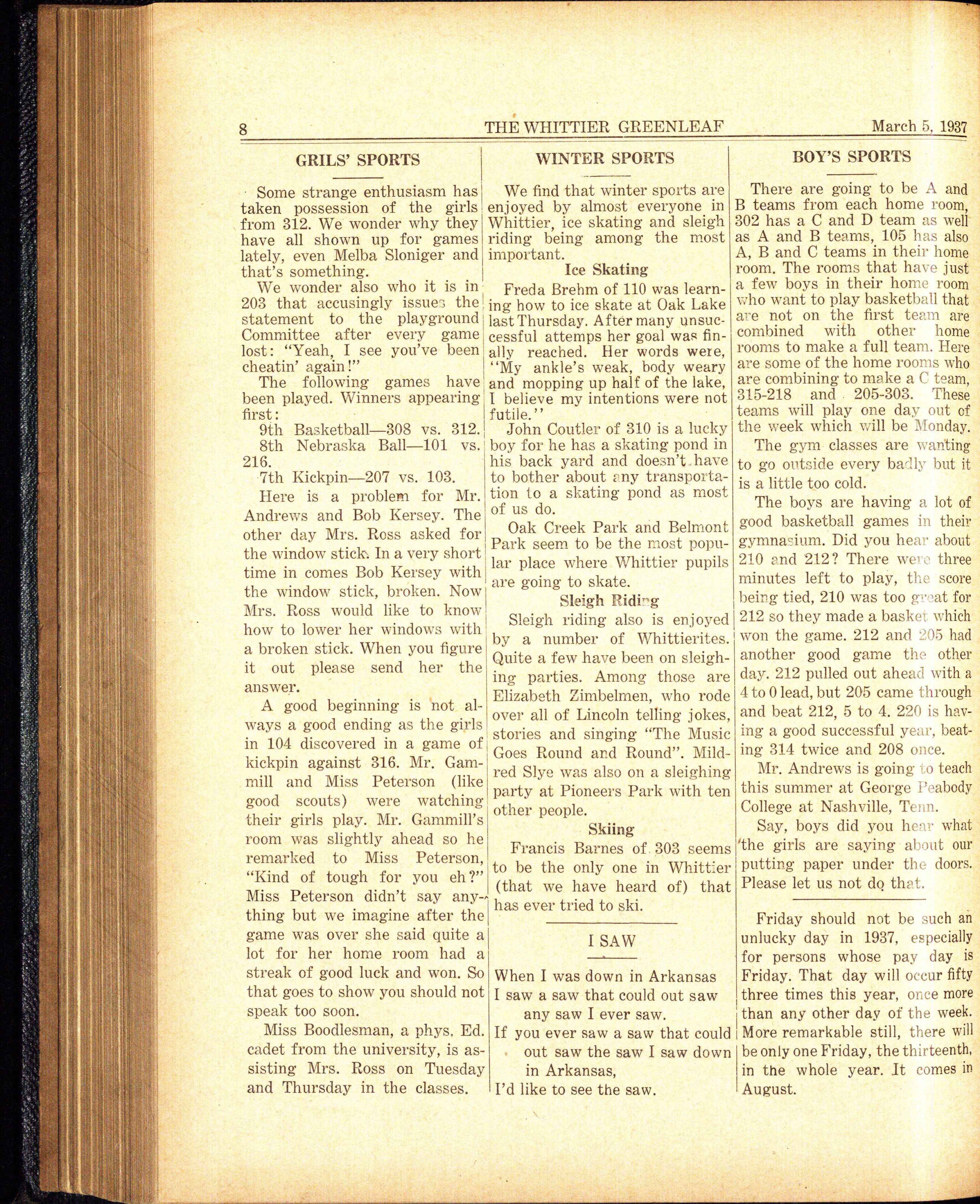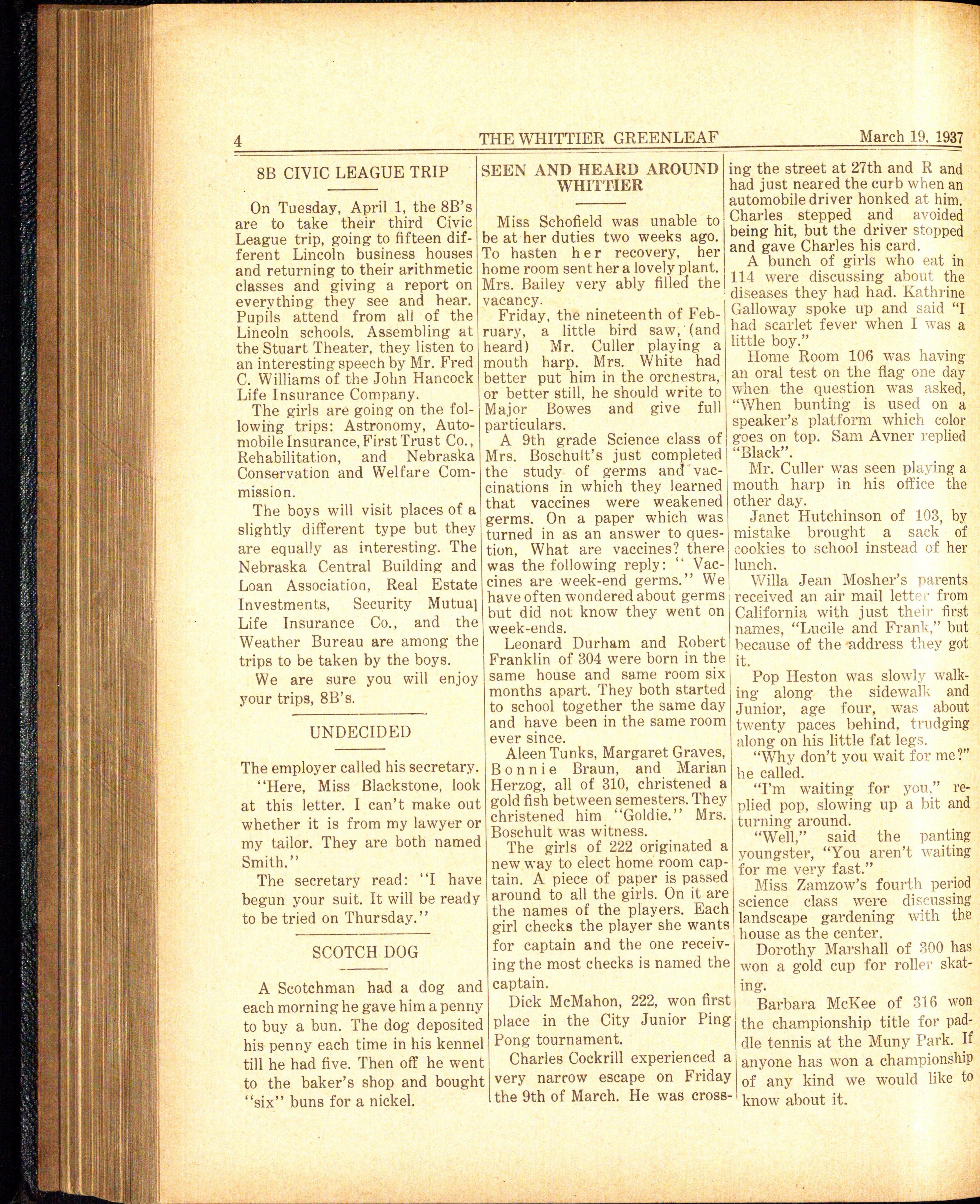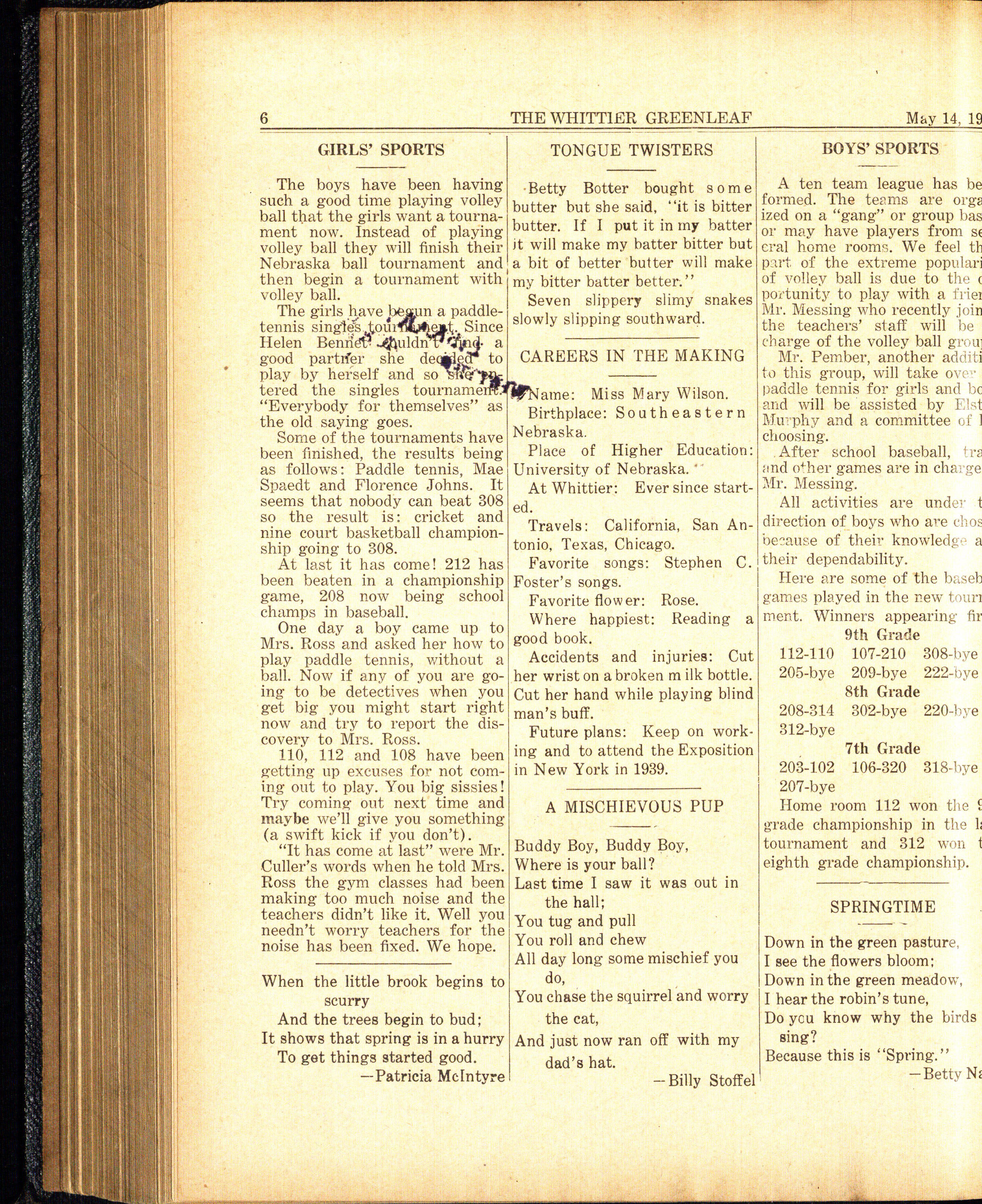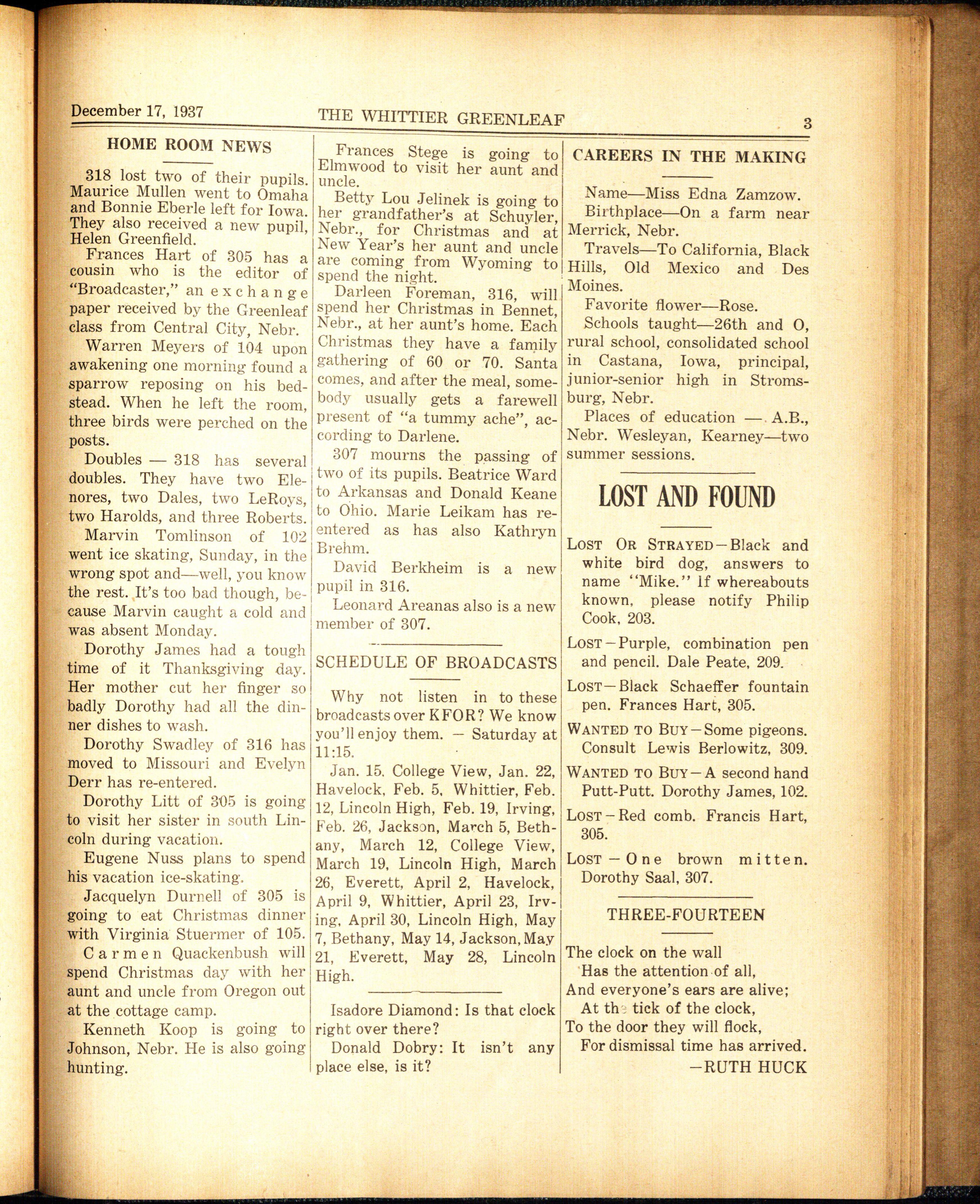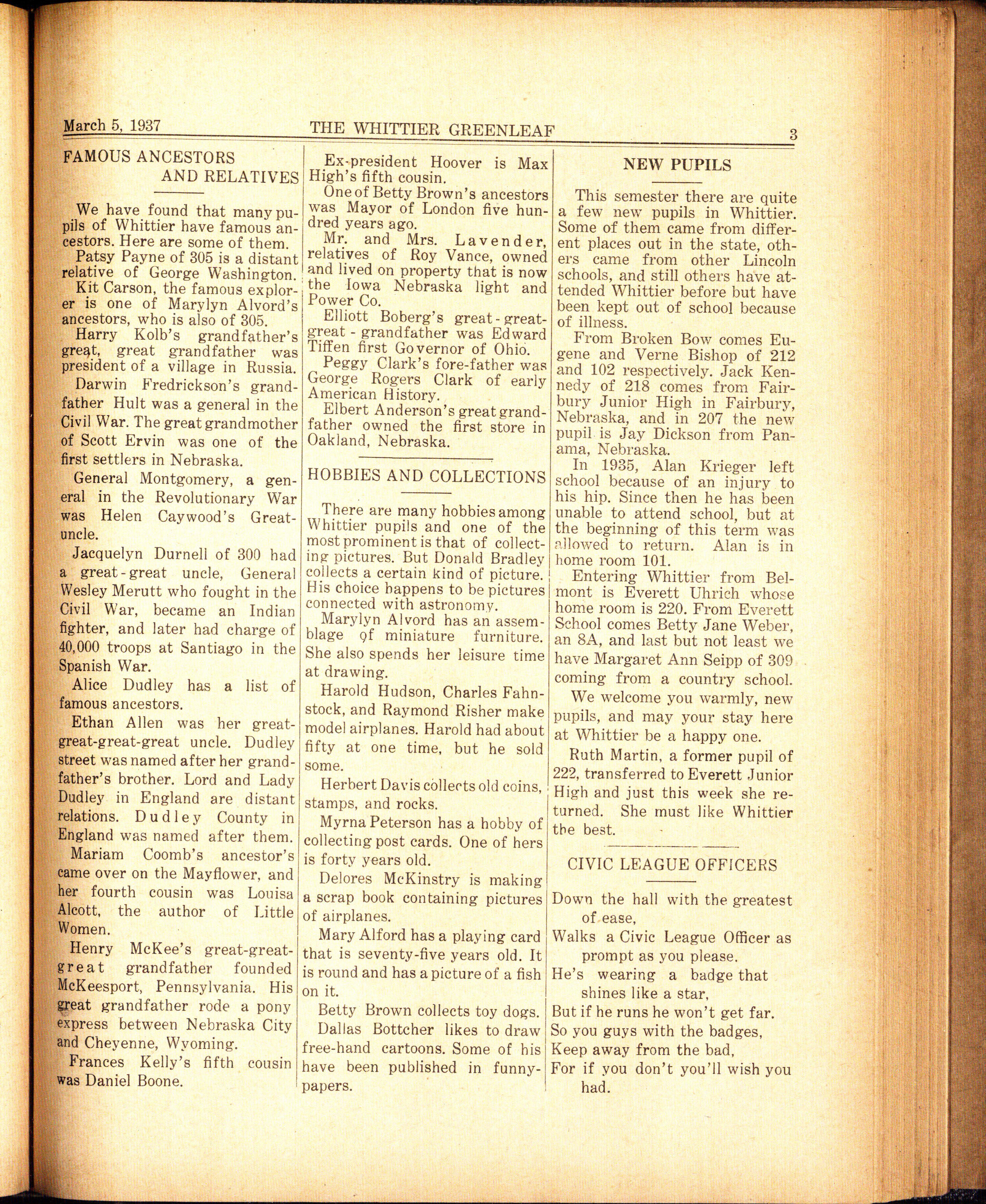 y e ar by pupils of Whittier junior hi g'h school, at 2 2 nd and Vin e s tree ts, Lincoln, N ebra ska
