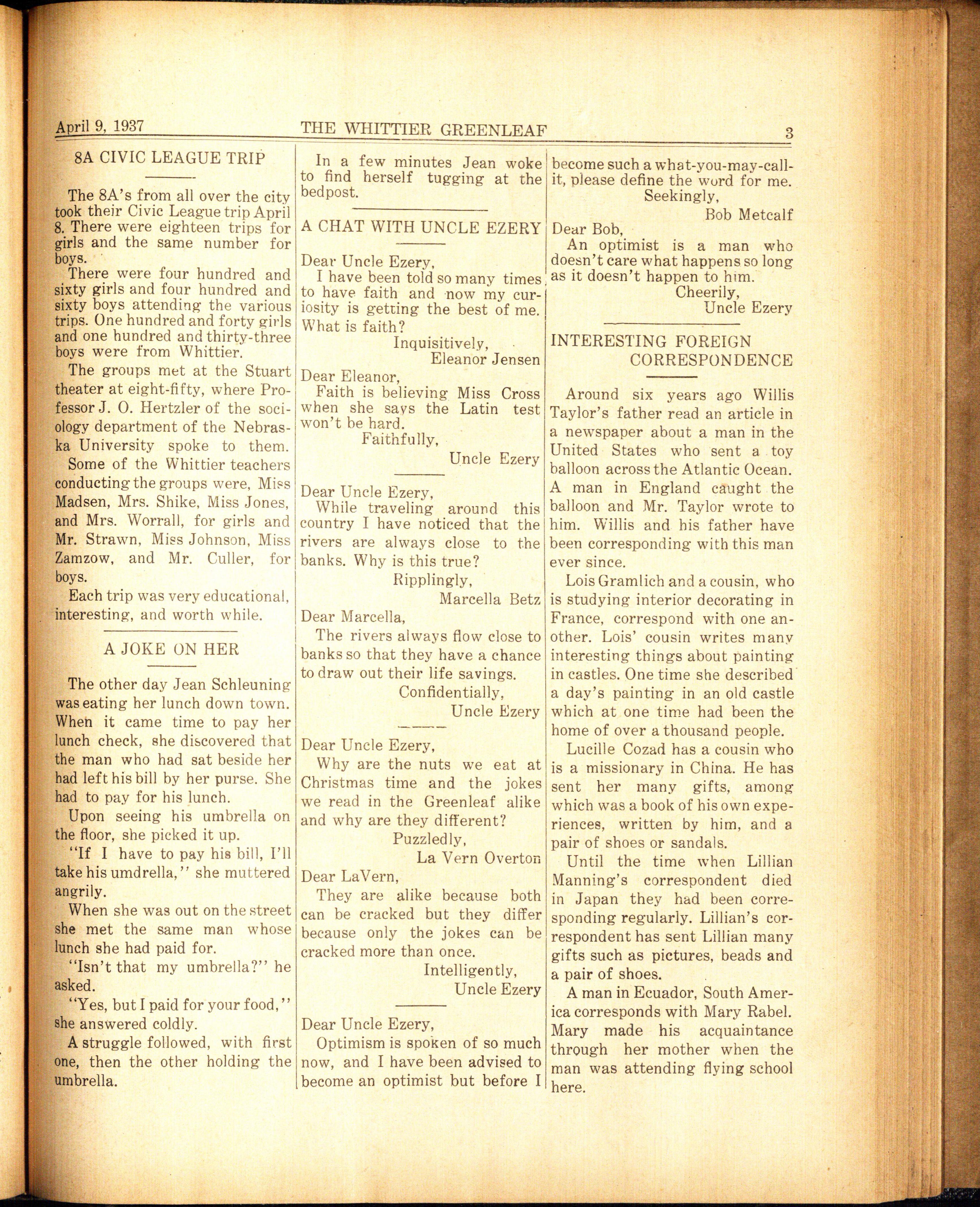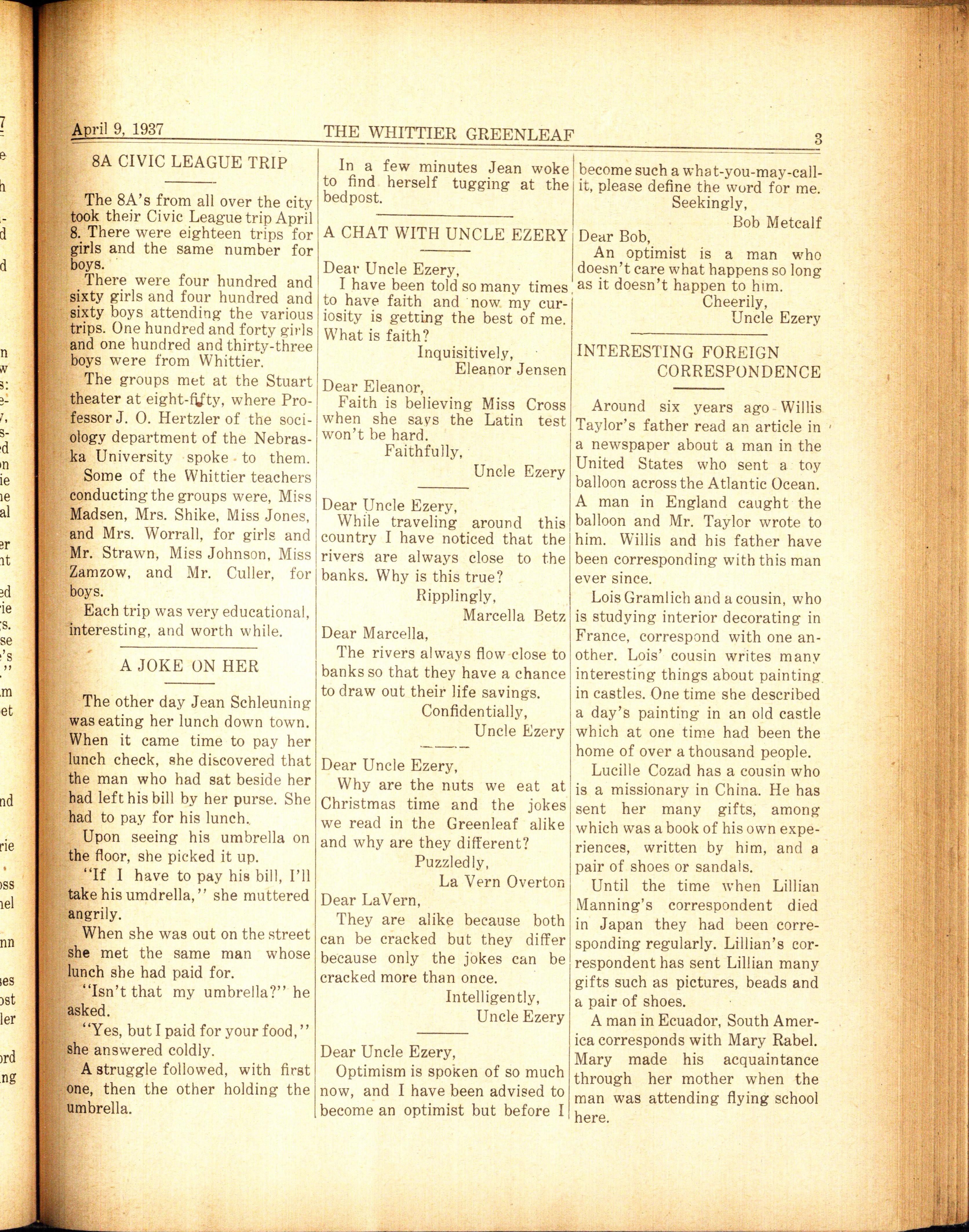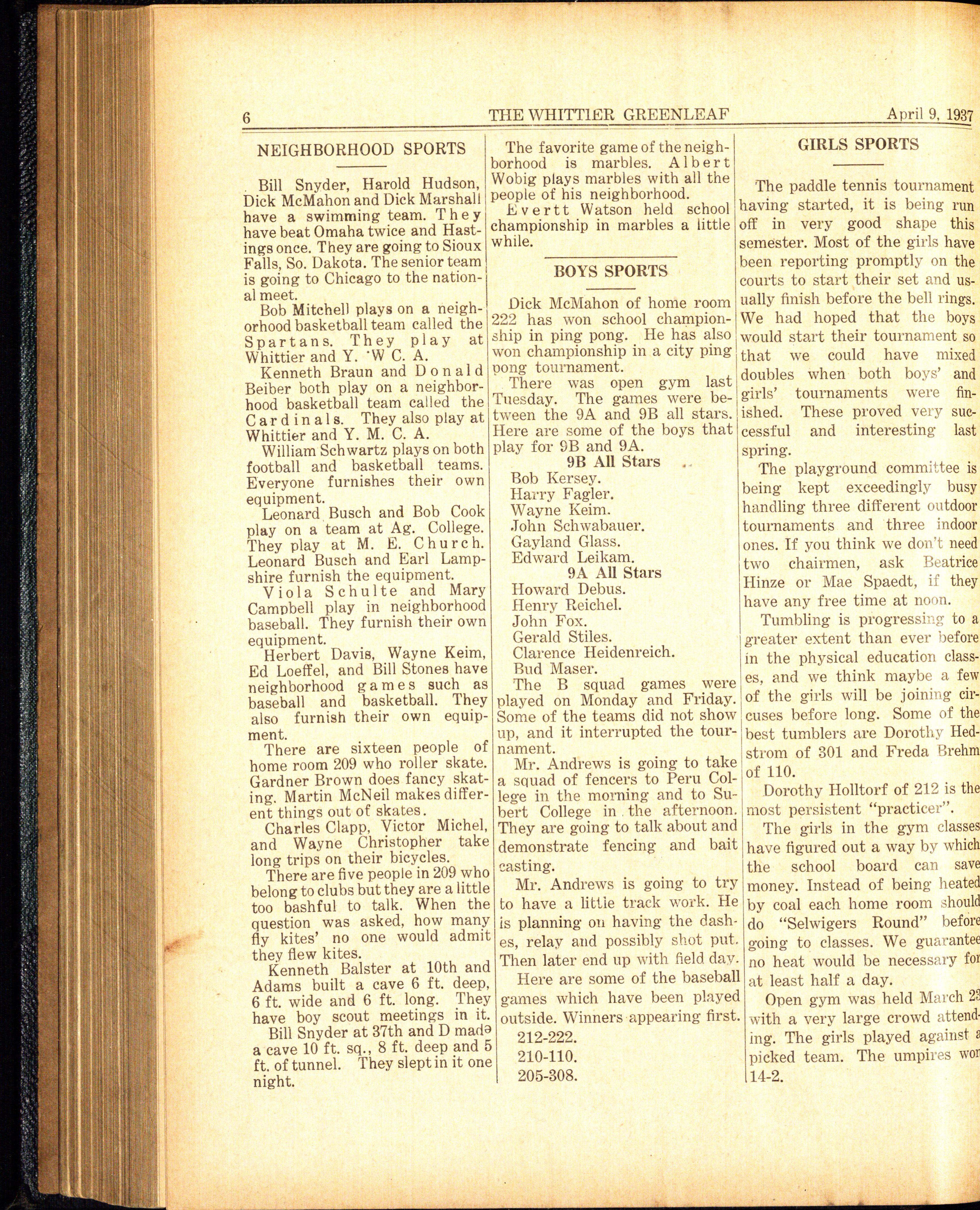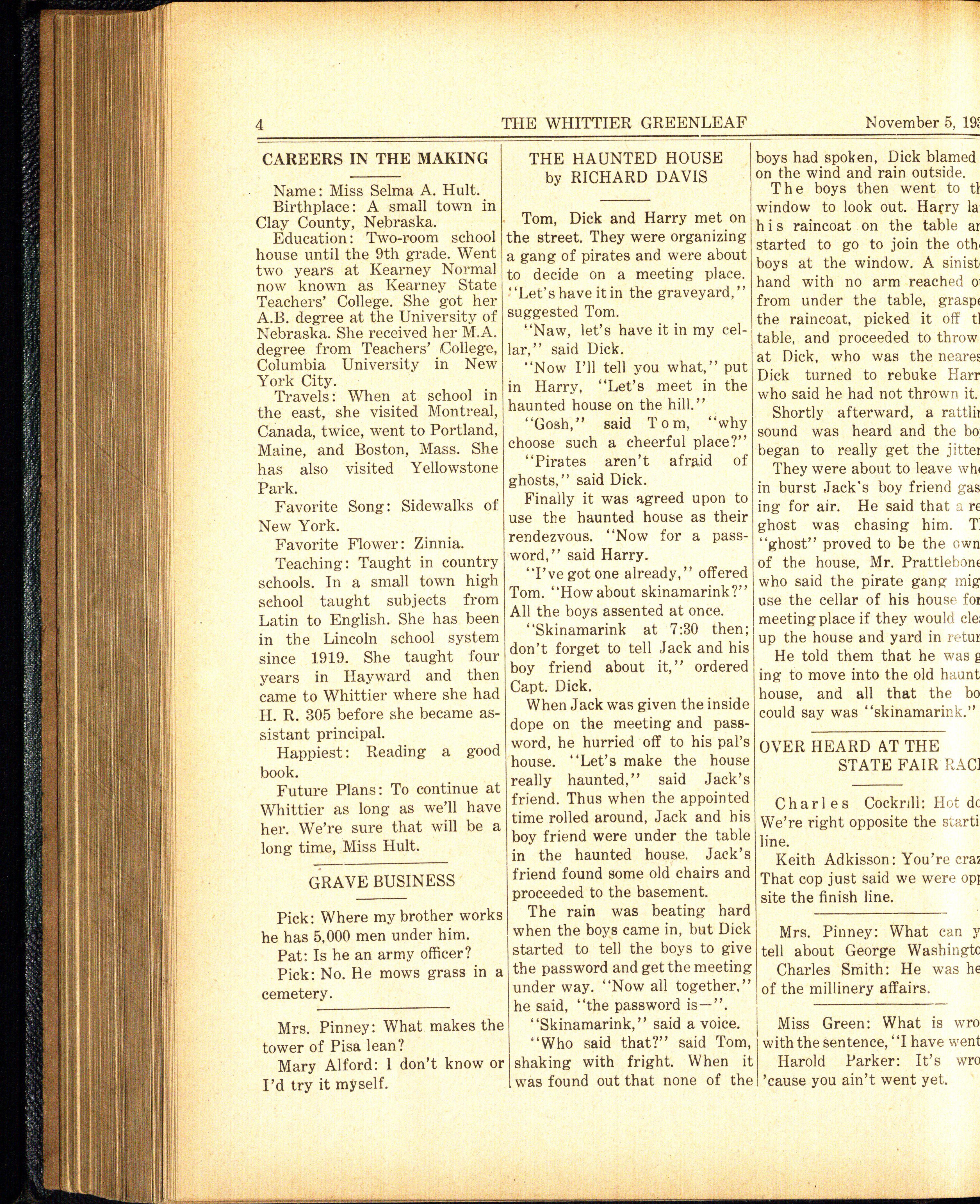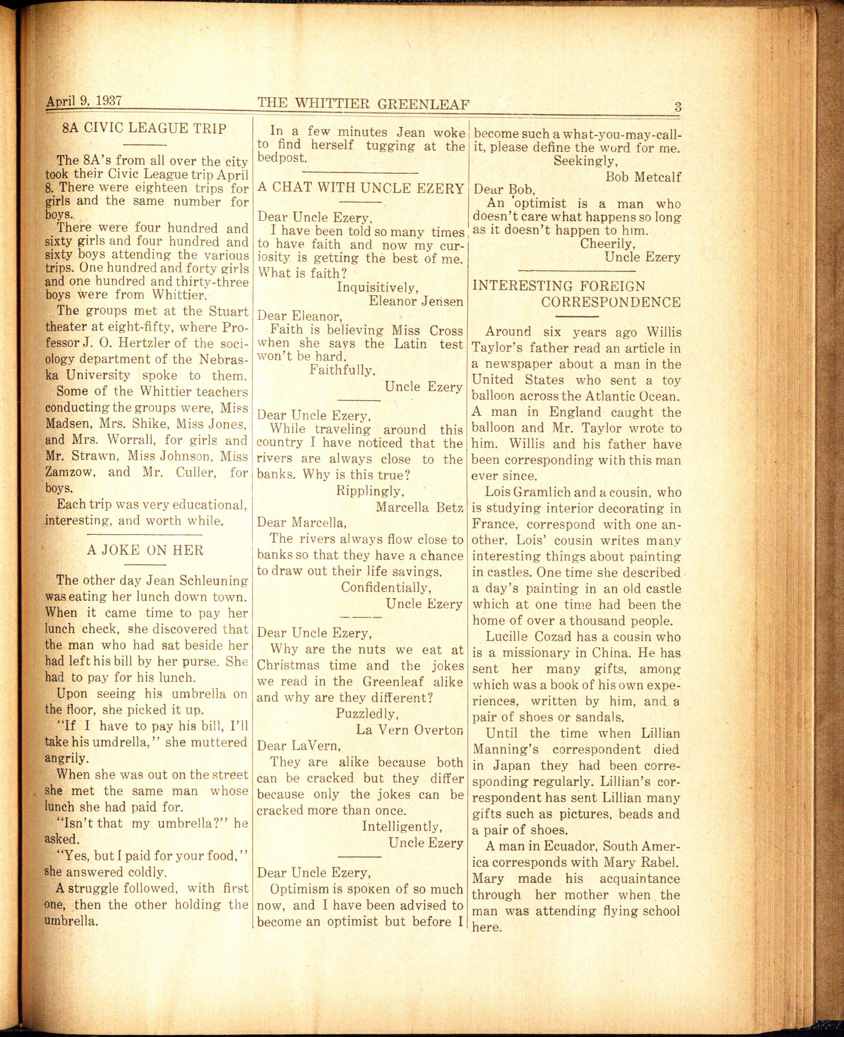 y e ar by pupils of Whittier junior hi g'h school, at 2 2 nd and Vin e s tree ts, Lincoln, N ebra ska