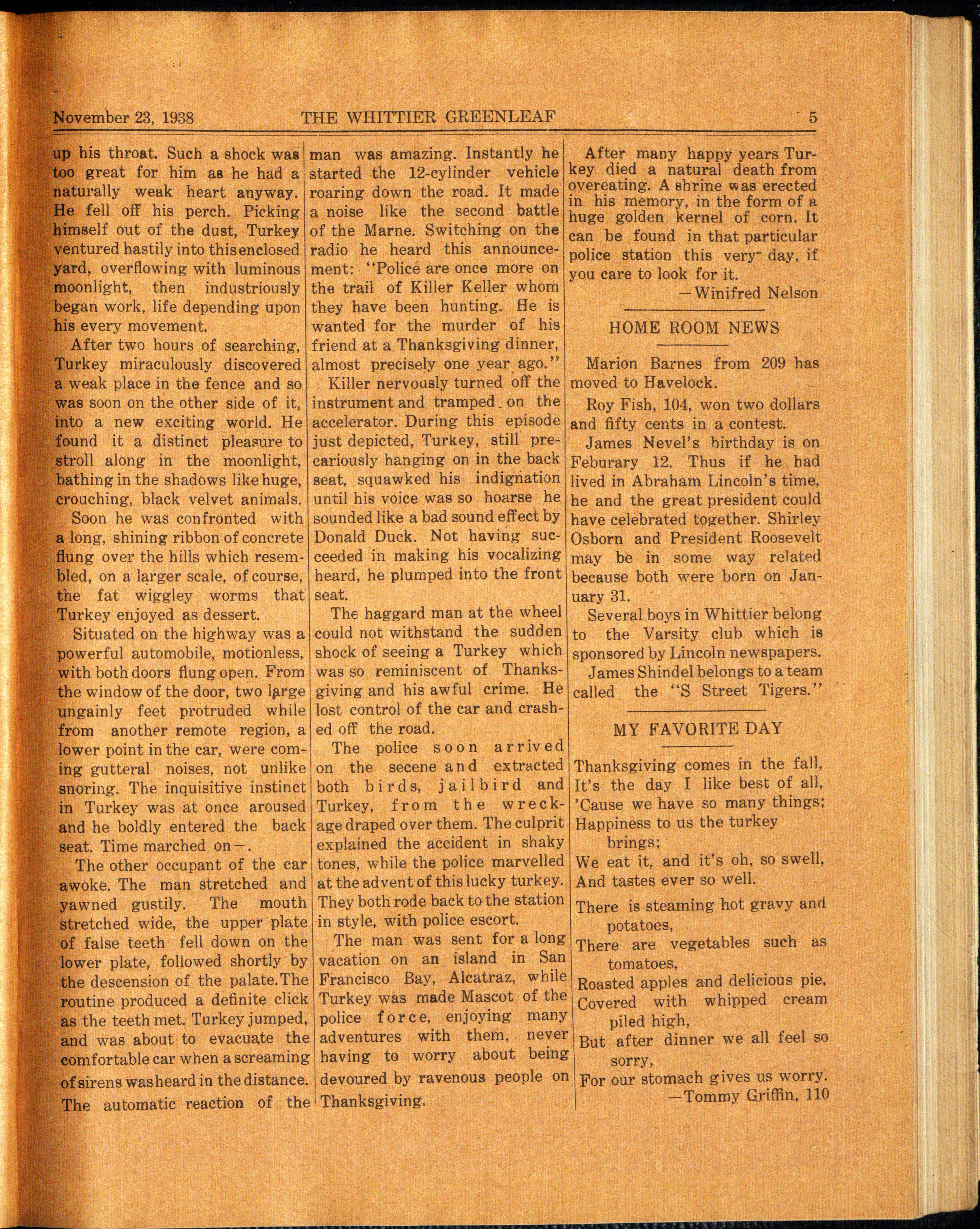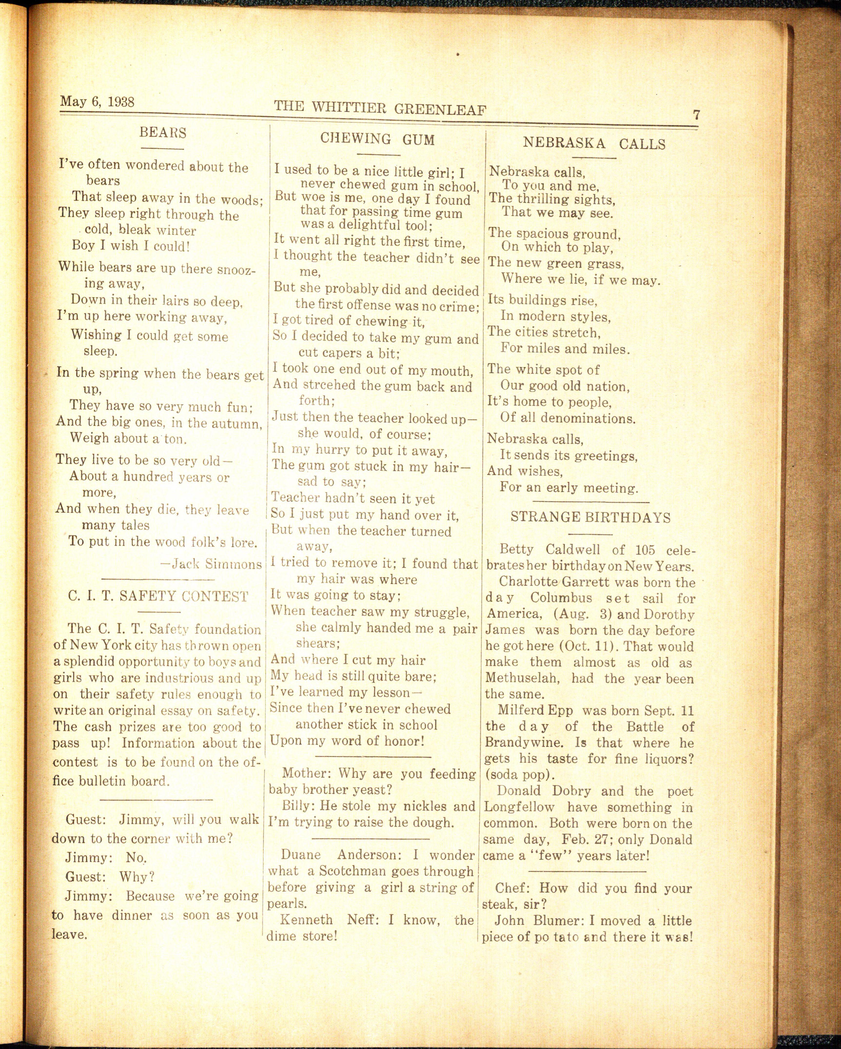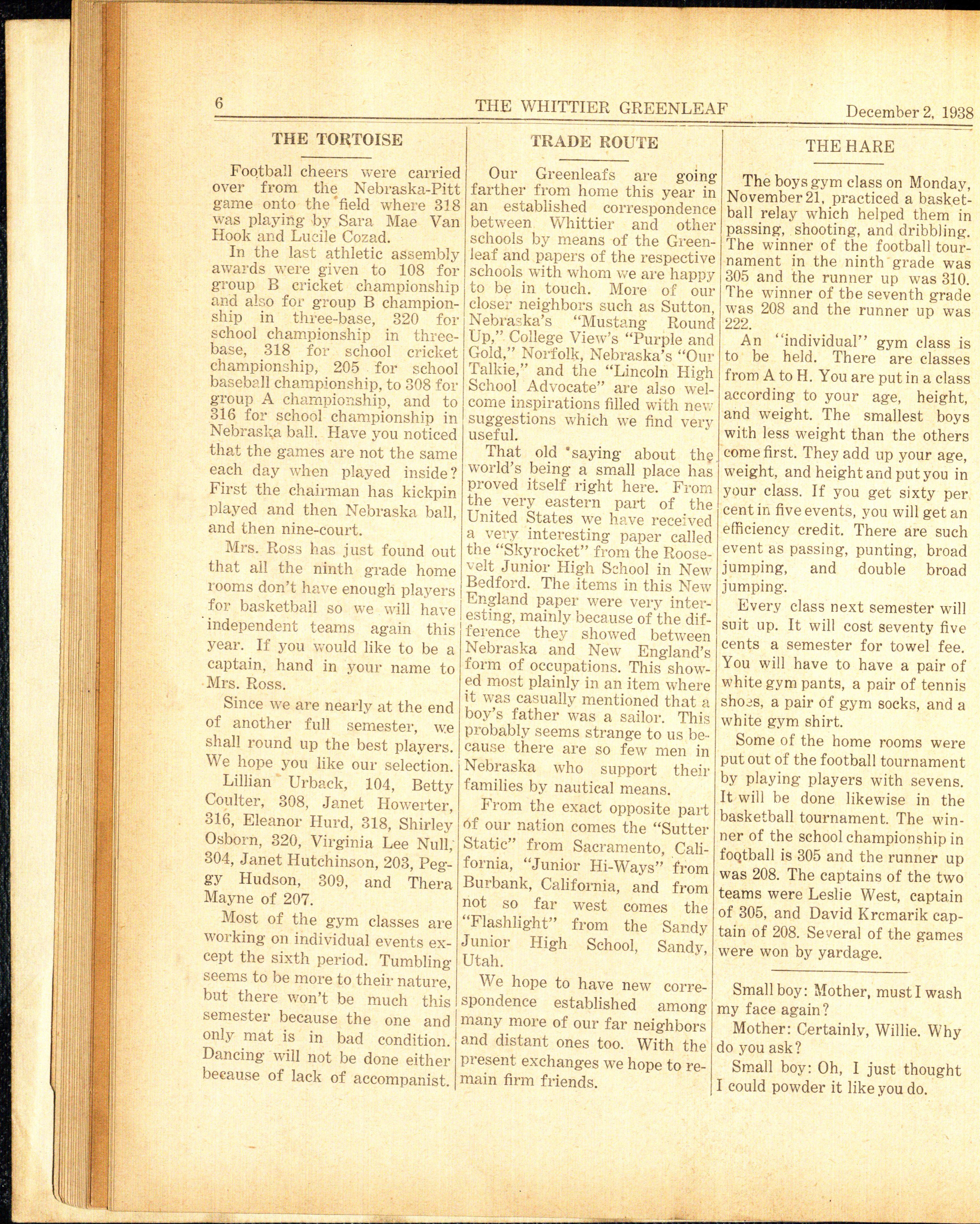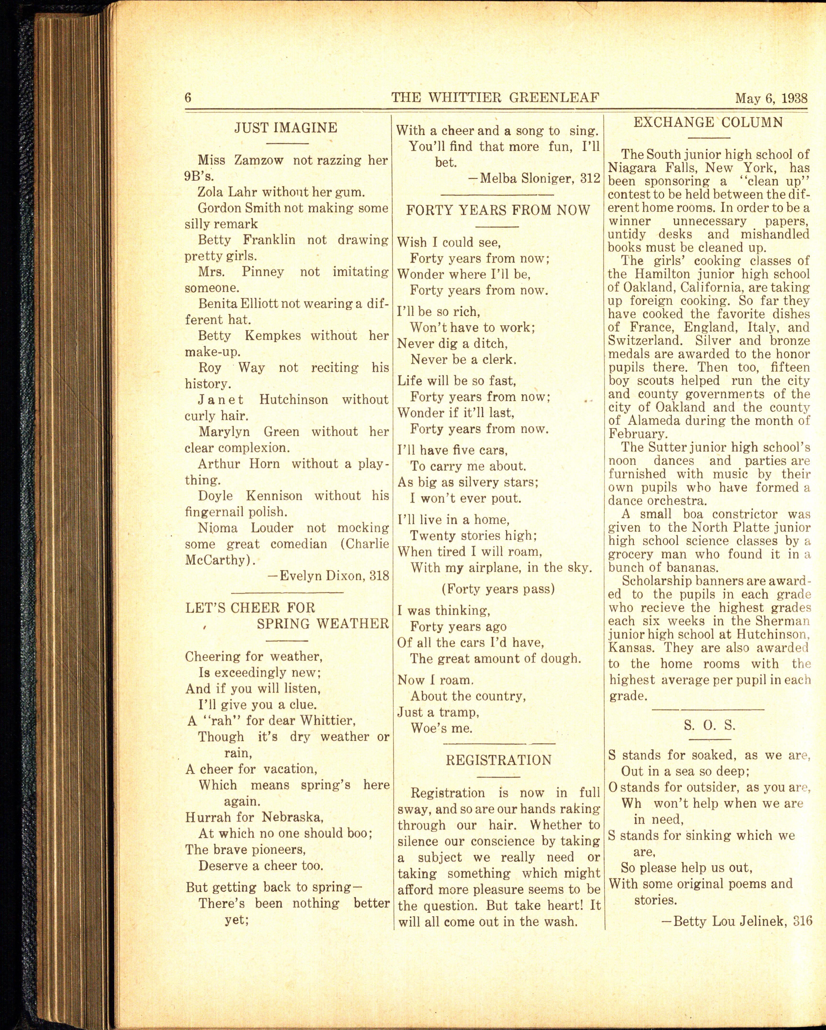 The 9A's final fling at Whittier will occur on class day which will be held January 20, 1938. 9A's graduation will be on Thursday, January 27, at the Lincoln high school. Some of the members of the Whittier orchestra will participate in the selected orchestra which will play at the graduation exercises. We sincerely hope the 9A's find much happiness in their new life