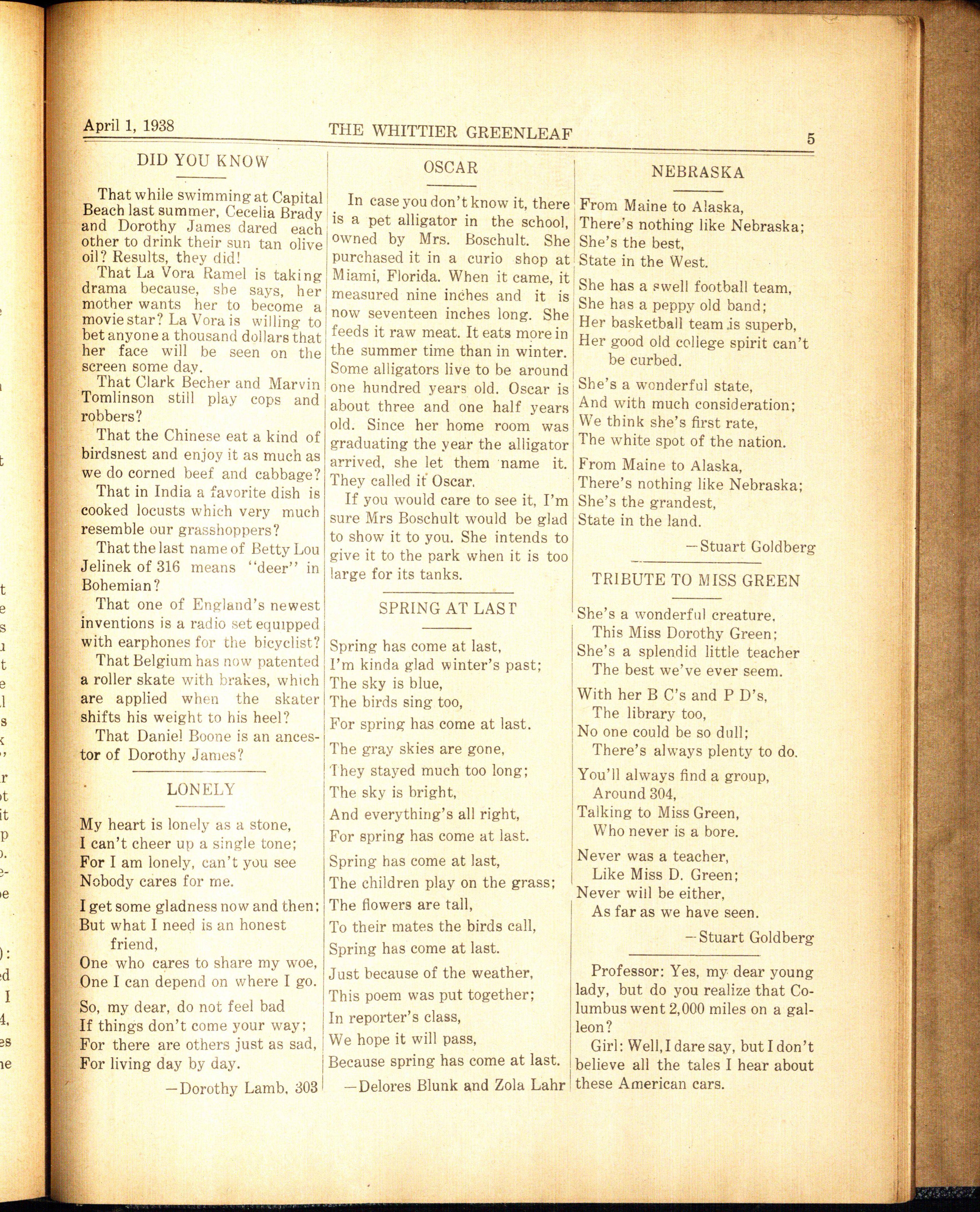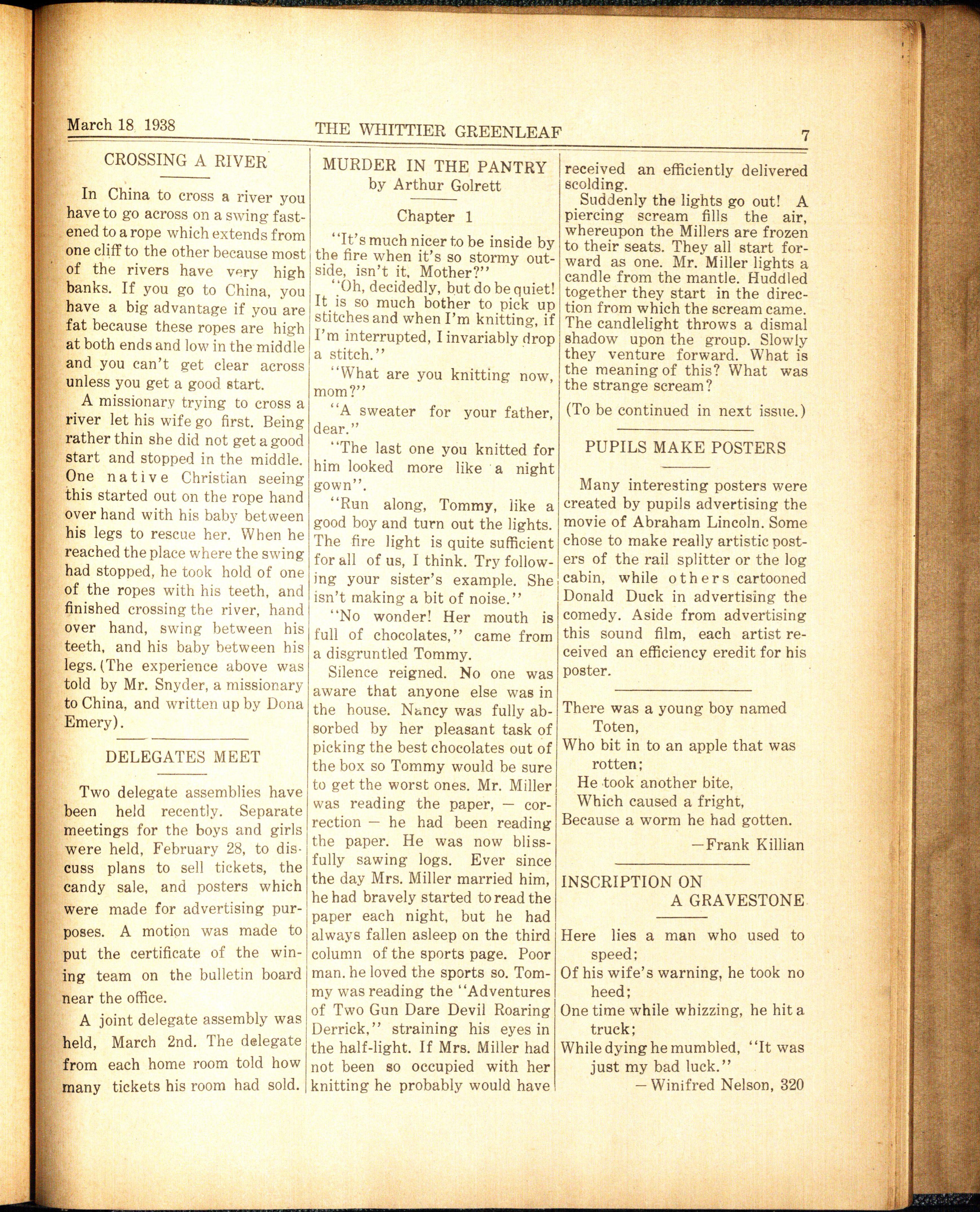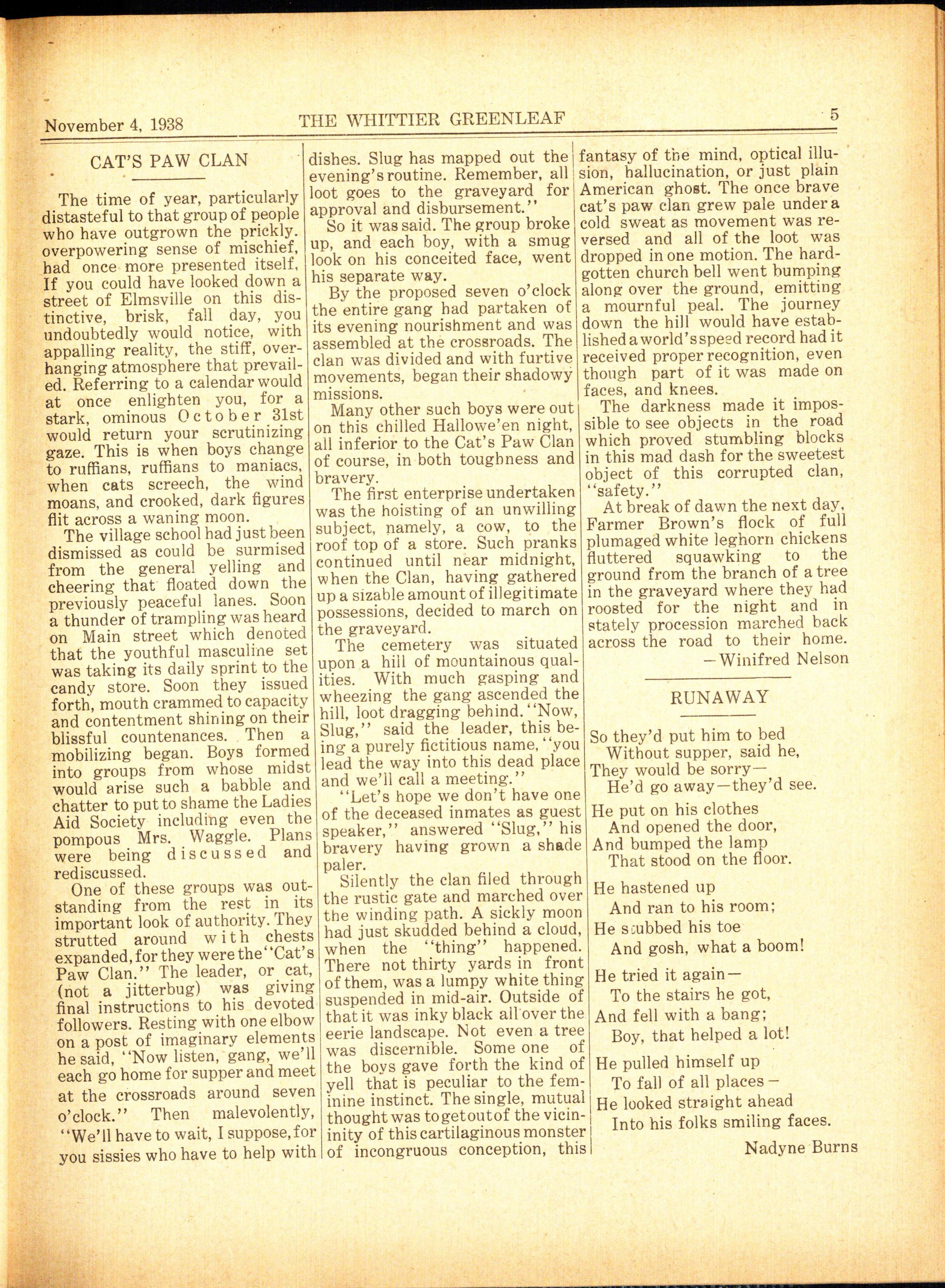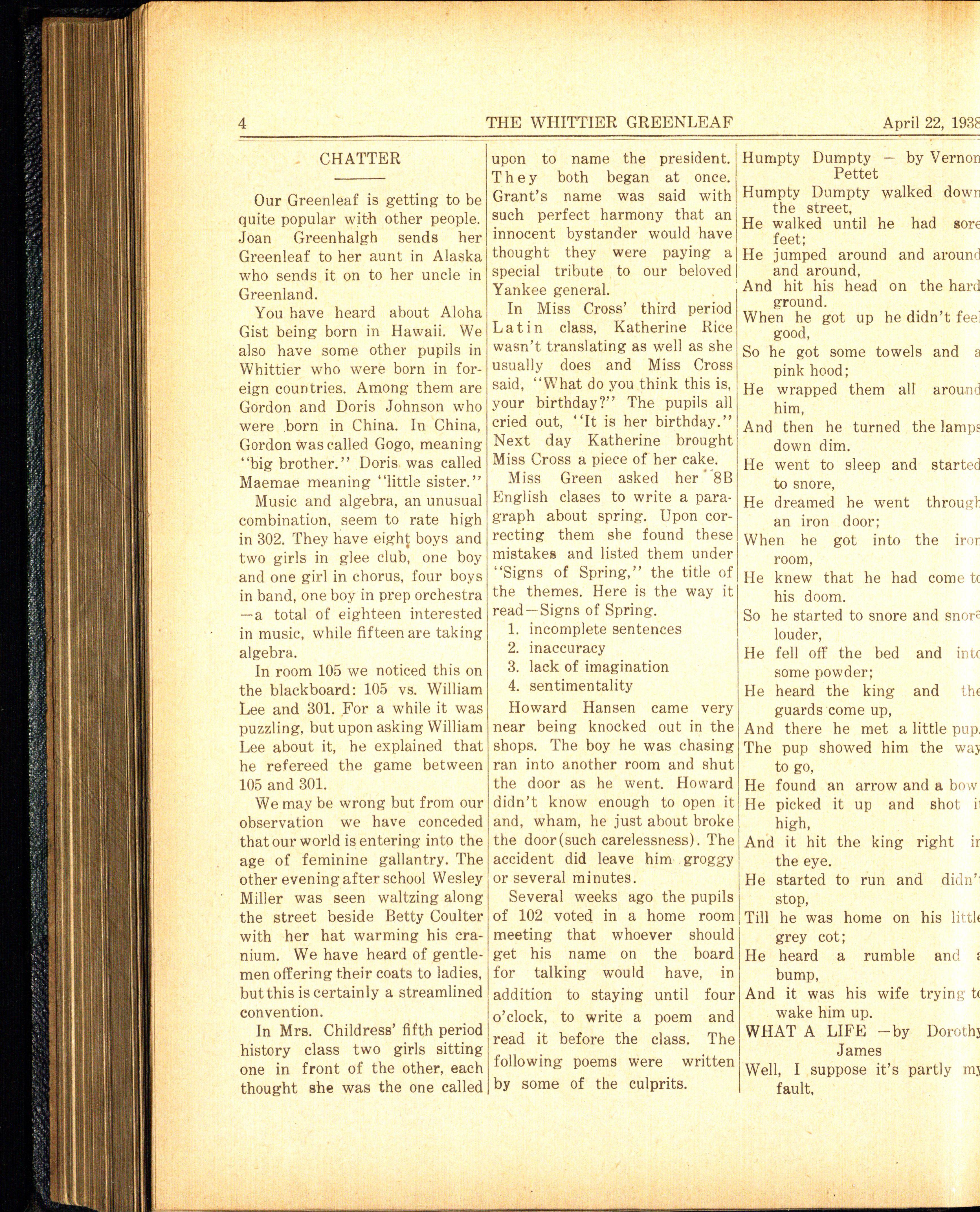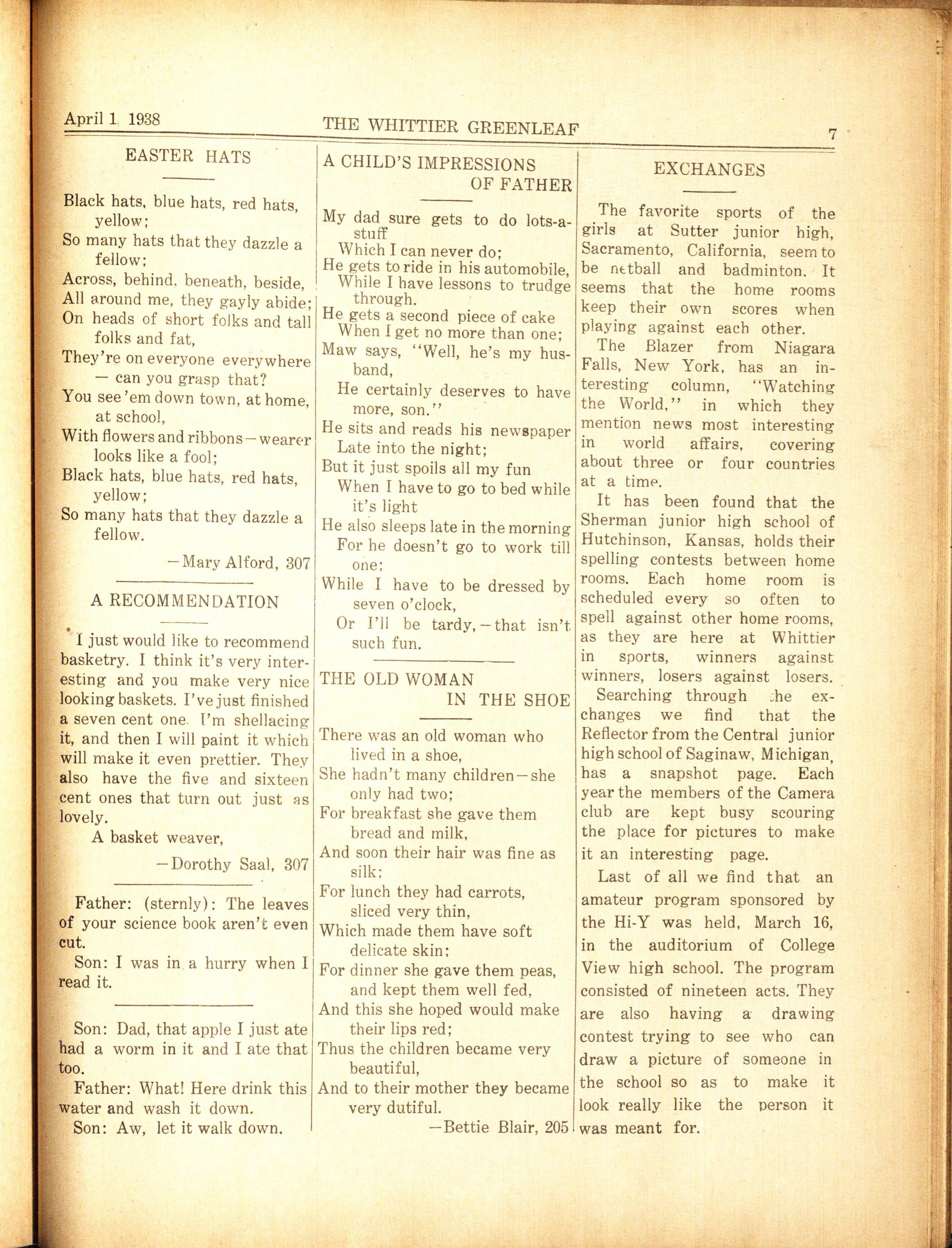 THE of the rules pupils sht.uld remem- KNOW 'EM BY THEIR WHITTIER GREENLEAF her on their way out of the quiet NICKNAME