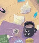 På det tidspunkt var Charlotte Pardi midt i at illustrere Paraplybutikken Bogens storyboard hang på opslagstavlen og lignede skitsen til en tegneserie udført med blyant. På bordet lå en sværm af farvestrålende og mønstrede paraplyer lavet efter en udklippet stencil. Det var meget håndgribeligt det hele.