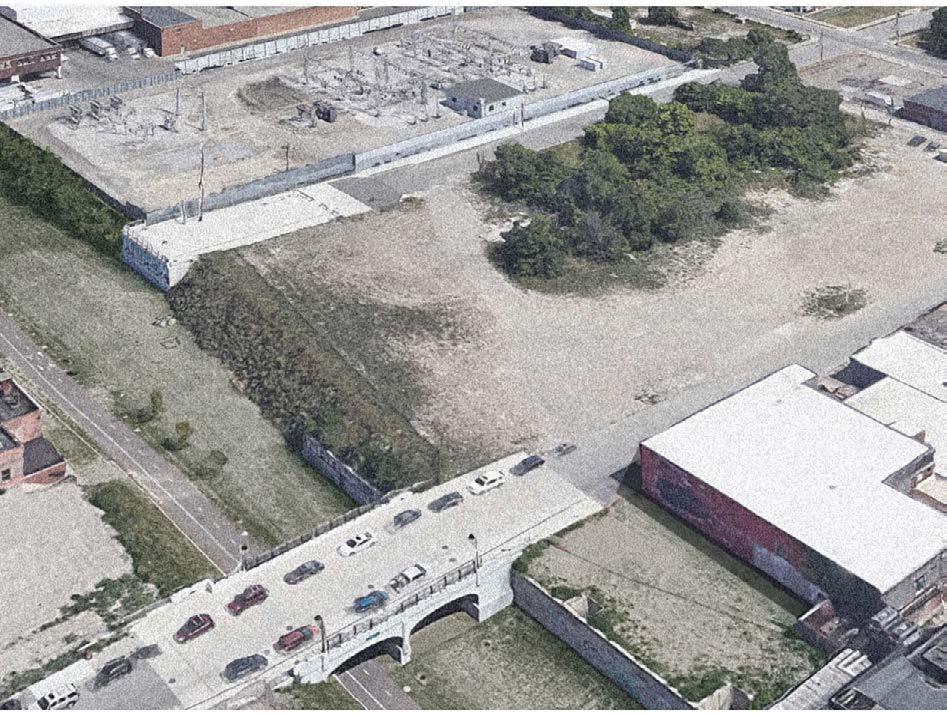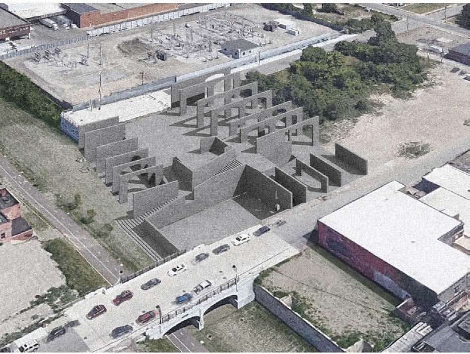 The existing site’s most significant conditions include its sharp elevation change on the west side, shallow elevation change on the east side, and the immediate adjacency to the Dequindre cut. Both of these factors need to be negotiated by the proposal’s structure. It should also be recalled the Eastern Market District’s extensive use of masonry shear wall structures and the subsequent mural culture that these walls help to facilitate. The ability and necessity for retaining walls and the canvas-esque nature of shear walls should determine the formation of the proposal’s structures.