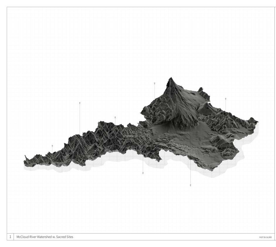 Our subject of deconstruction is the Shasta Dam, a 602’-0” high concrete gravity dam located in northern California near the headwaters of the Sacramento River, and the key facility for the Central Valley Project. The Shasta Dam was planned in the early 1930s, as the Bureau of Reclamation recognized that the site just south of Mount Shasta along the Sacramento River was not being developed and used to its full potential. When the site of the Shasta Dam was selected by the US Bureau of Reclamation–the land was neither desolate nor unoccupied. This narrative is similar to many other stories of indigenous peoples in the Americas, the Winnemem Wintu’s land was systematically taken and constructed upon allowed by a history of bureaucratically backed series of acts, decisions, and actions taken by the US Government.