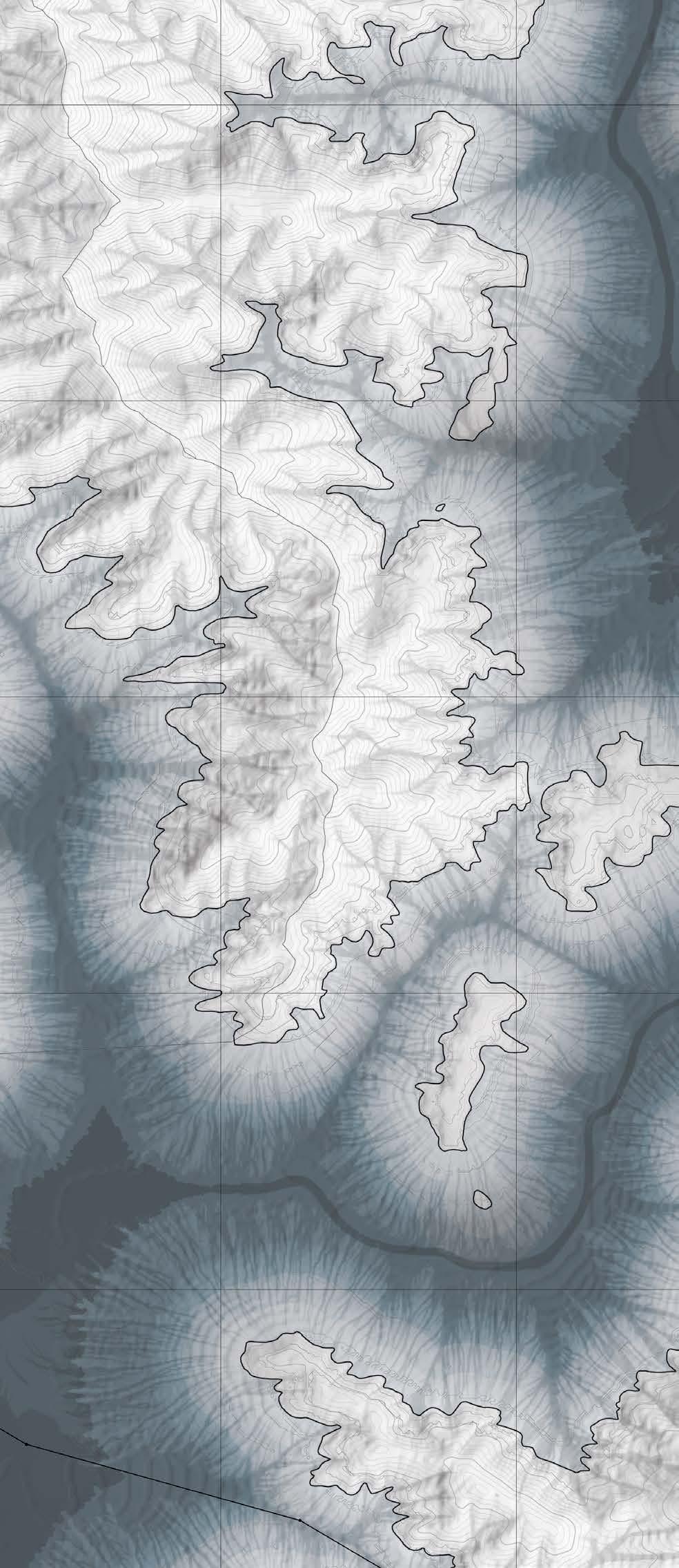 This alignment of the Dam and the Institute necessitates a choreography of construction to take place upon Lake Shasta. Points of interest are established, areas to launch vessels, critical points on the dam, and various points along the institute create a network of tugboats and barges all carrying equipment, rubble, and people. The third actor in this choreography is the lake itself, as it will fall in depth, shrink in area, and change in shape. The proposed structures follow this changing shape and adapt to it.