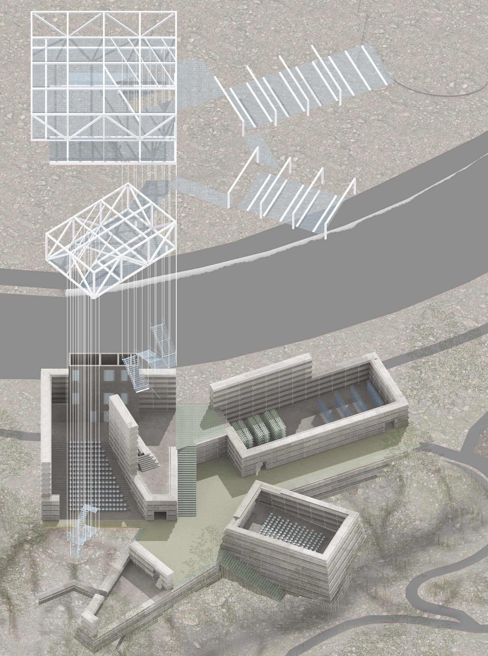 Ultimately, in order to effectively engage with the lingering crescendo of mid 20th century oppressive infrastructure, a meeting of equally large scales must occur in order for a decrescendo to occur. The ethereal agility of the platforms materialize this ethos in its ability to transform both the dam and itself into a structure whose imprint is instead subservient to the river.