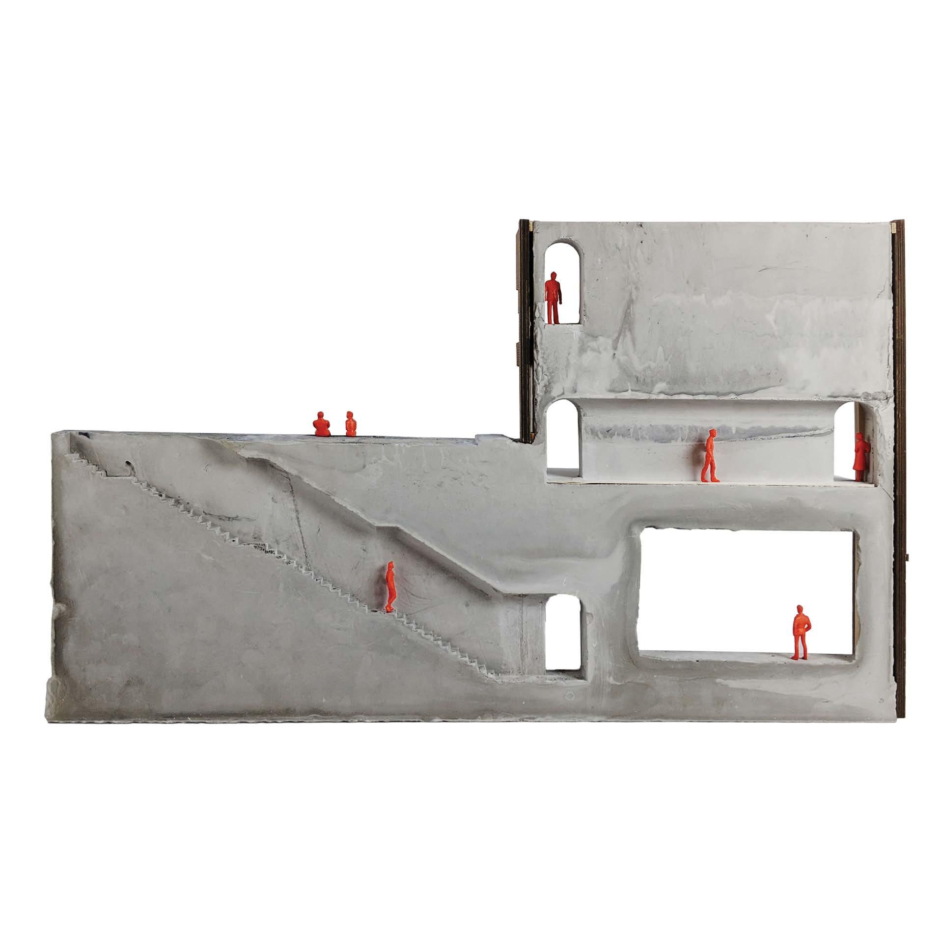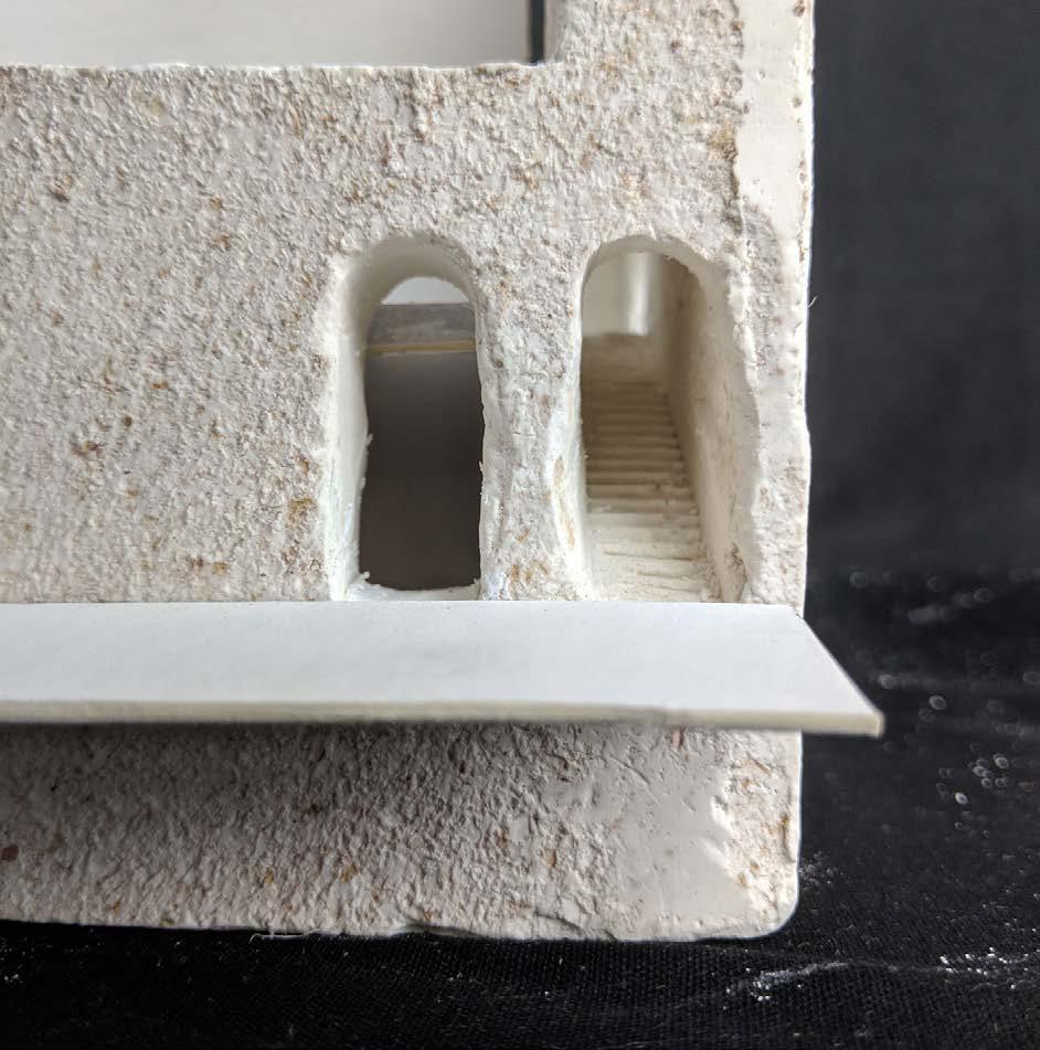 A key transition in the model making process was the introduction of ‘Rockite’. A concrete looking, plaster acting mixture that renders the materials it is casted against.