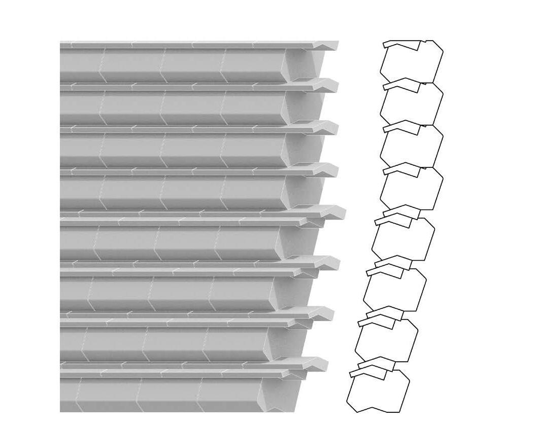 The morphology of the project optimizes the spanning capabilities of double tee slabs and bearing walls. Light is introduced to the space by pushing and pulling walls and slabs to create windows and monitors. Walls pushed out are double tee bearing walls, and walls pushed in are custom cast solid walls. The light is further manipulated by the stems of the double tees, acting as vertical fins on the east and west facades, While the form of the custom cast solid walls distribute light into the space.