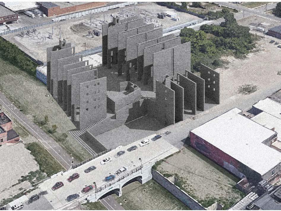 Houston Texas sits within Harris County whose area is largely flat sans the bayous that scar the landscape, providing rare moments of shifts in elevation. This is a natural border in the city, which the urban landscape accepts, a snapshot of the bayou in time, which is petrified by the Army Corps of Engineers’ concrete gutters. The geometry of this gutter is absorbed into the city’s fabric, further emphasizing this border. This project sits on this atypical condition, straddling the city and the bayou which often floods. ‘I.C.H.’, Immigration Center Houston, is a place of celebration for all that immigrants to America provide and achieve.