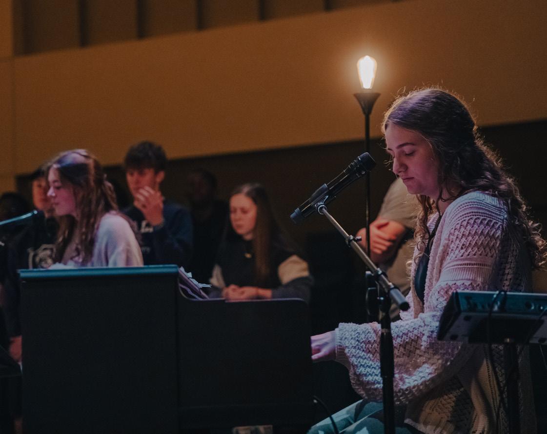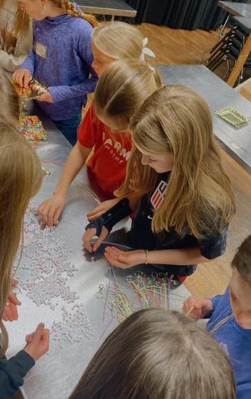 This year’s Girls' Night Out theme was “Worth More than Gold.” The event took place in Warrior Hall, where the foyer was decorated with gold table covers, balloons, and candles. A fun photo booth was set up where the girls could take photos with props that were included. They started the evening off as a group, singing worship songs led by LRCA choir teacher Reagan Gray. After that, they broke up by grade into “breakout” sessions. These sessions included teachings from 8th