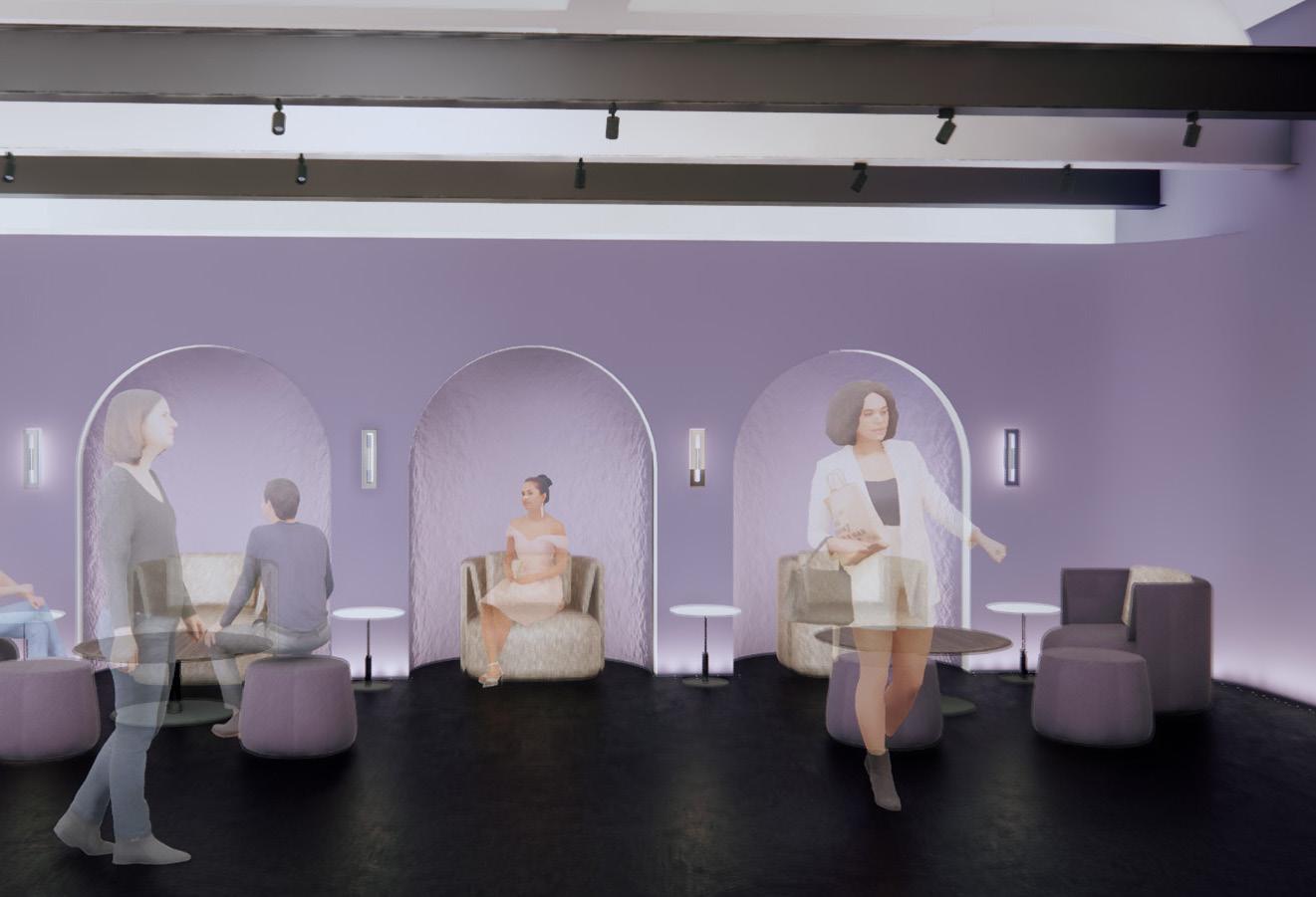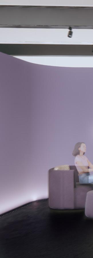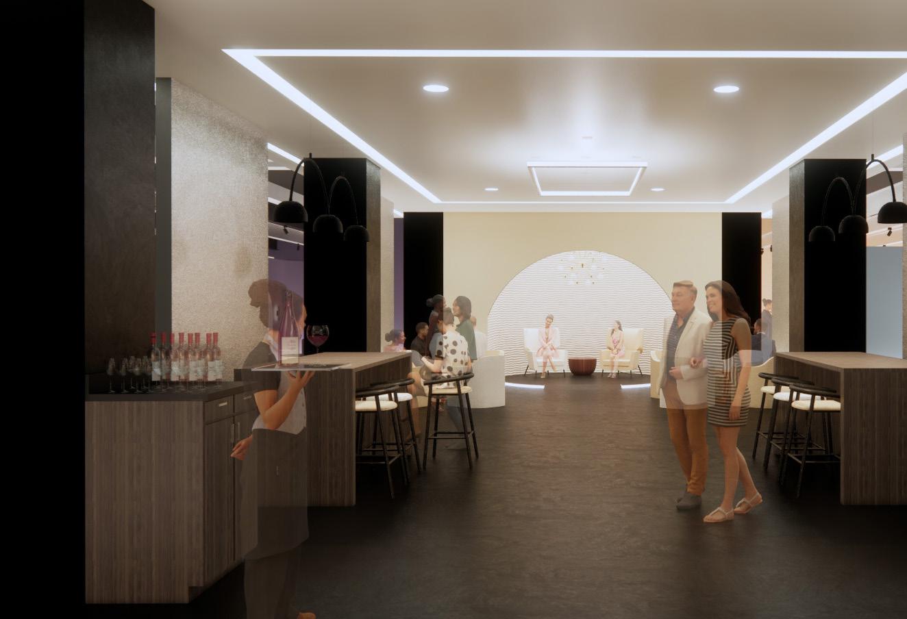 Through the use of color, lighting and high-back seating, Bernhardt provides its viewers with a royal experience.
