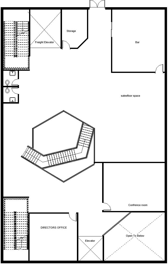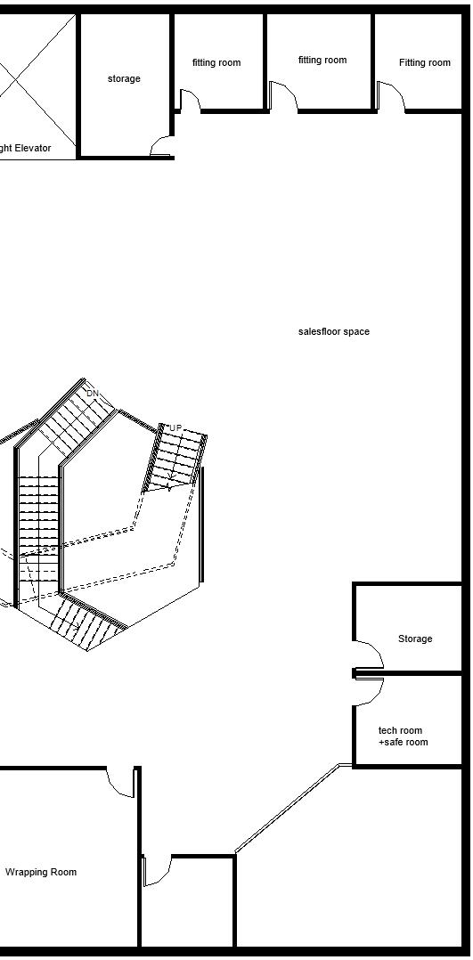 The foundation of this flagship store is home to employee offices, a directors office and a conference room.