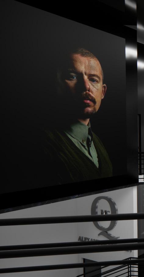 This foundation space was designed to commemorate Alexander McQueen, by featuring a mural of him in the space and making it seem as if he himself were there watching over everyone.