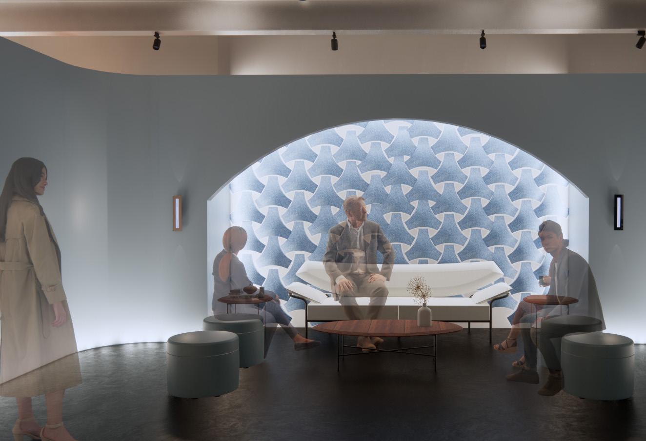 This connection vignette is intended to make the viewer of this vignette feel connected to nature through the color of the space, the lighting and the textures throughout.