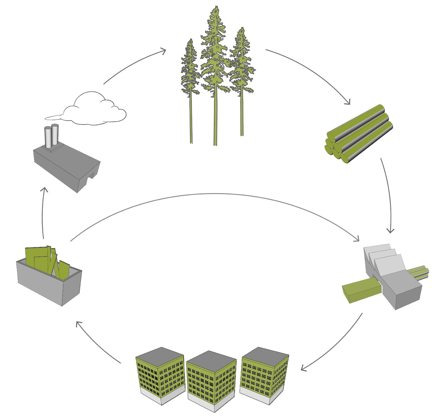 Mass timber buildings have a smaller environmental footprint relative to steel and concrete buildings.