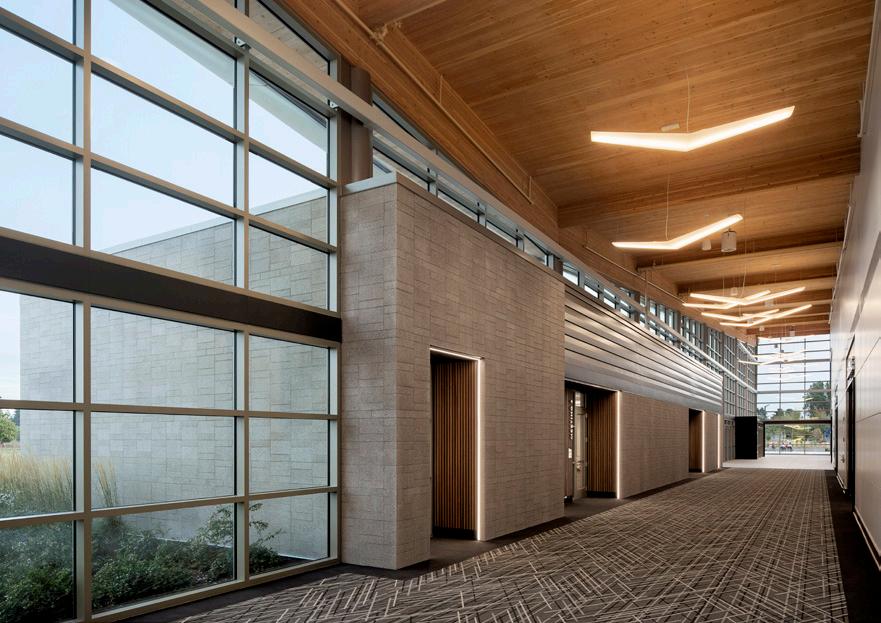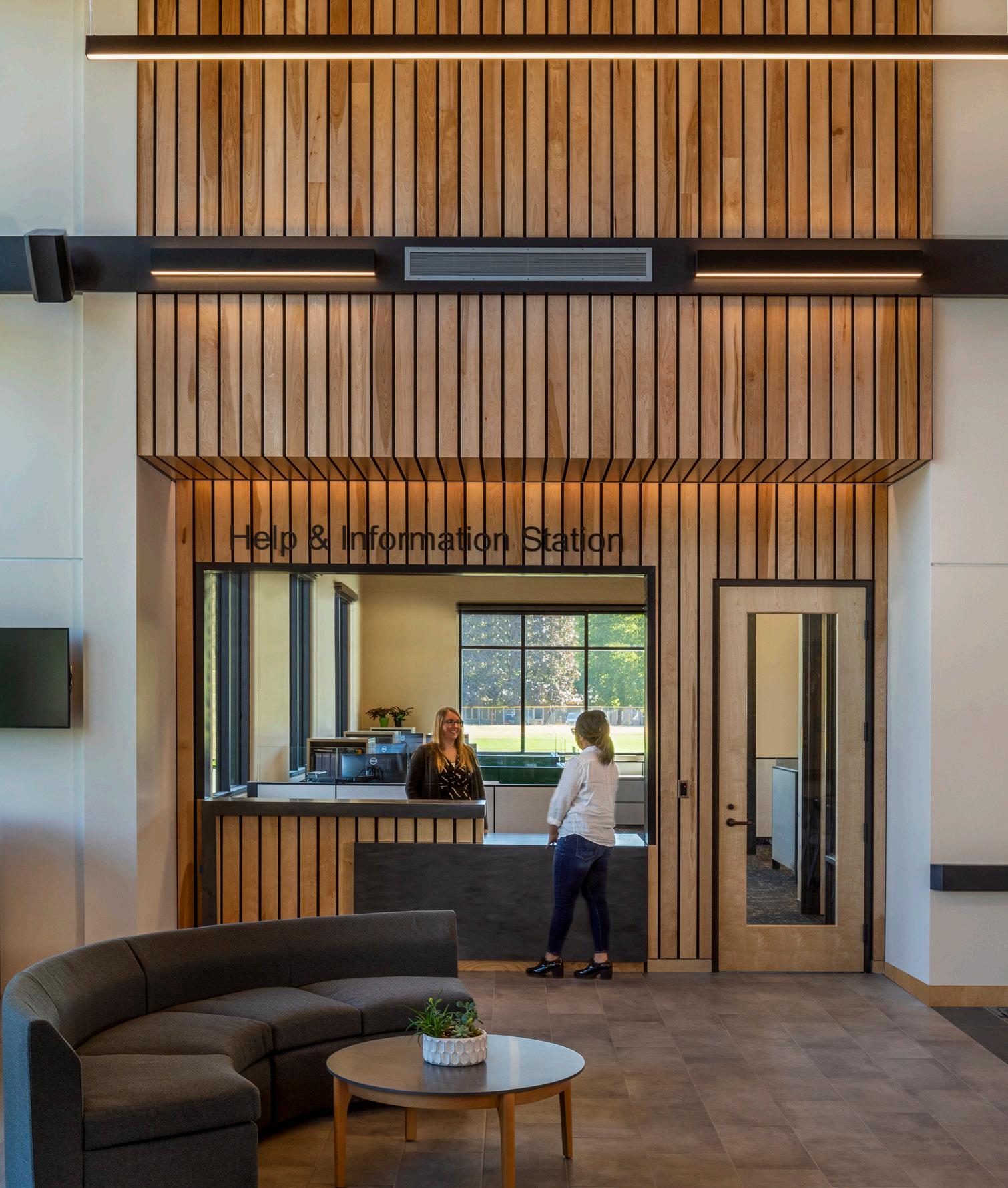Rich and warm, wood materials add texture & visual interest to modern architecture. It also provides a biophillic benefit to building occupants.