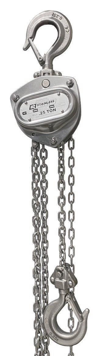OZ Lifting's new 0.25-ton capacity stainless steel manual chain hoist.