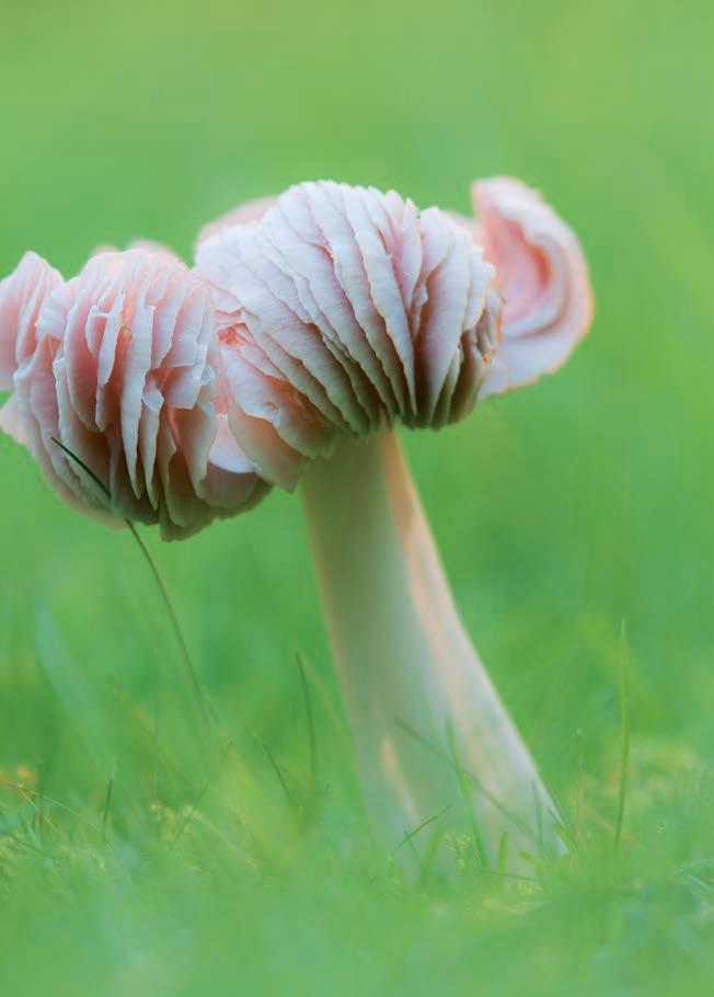 A survey at Merry’s Meadows con rmed that this grassland reserve has a rich array of fungi, with 15 varieties of colourful waxcaps being recorded, including the vulnerable species crimson waxcap. Meanwhile a survey at Ash Tree Farm (see page 14) recorded 12 species, including pink waxcap. These results show the huge importance of undisturbed grassland.