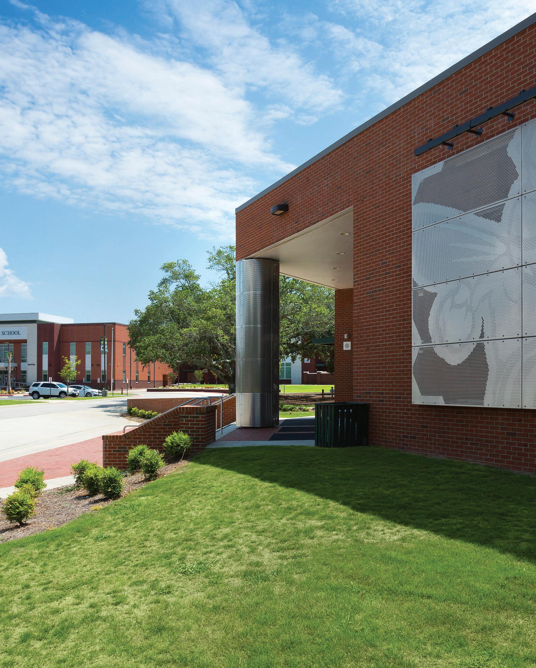 Window Placement: Windows are strategically placed in the front of the building to allow for continued “eyes on the street” and throughout the rest of the school to allow for natural light and views for the students, while minimizing opportunities for unwanted visitors on site.