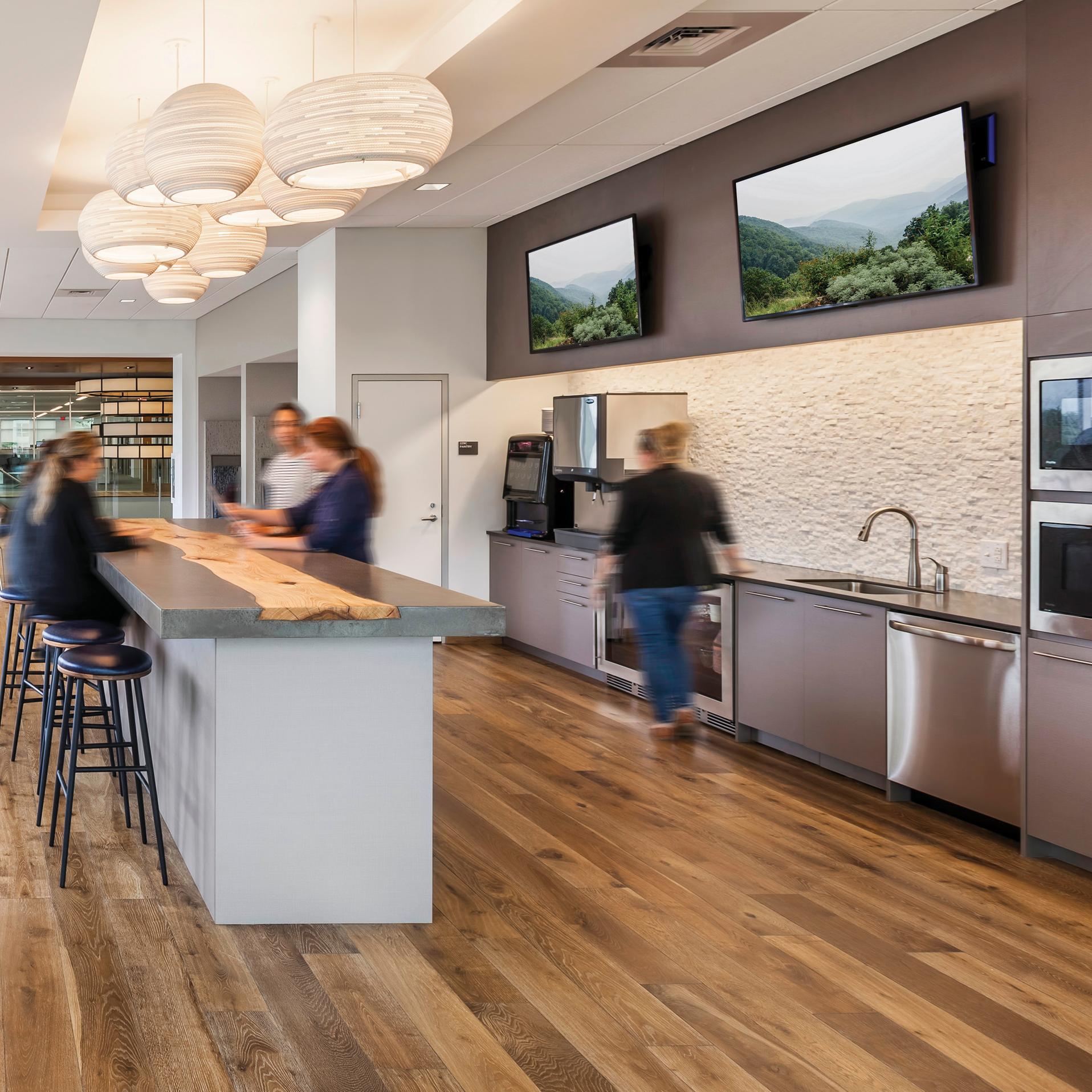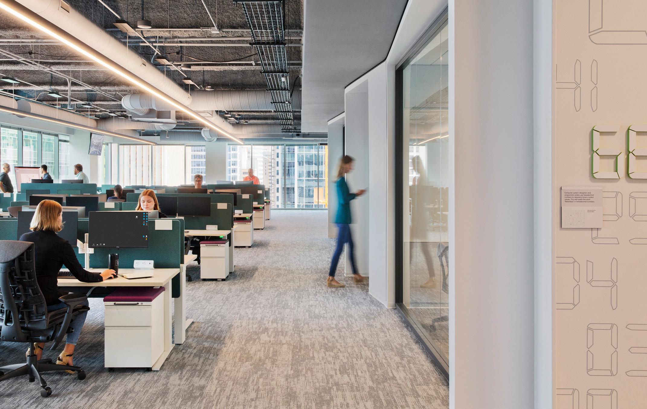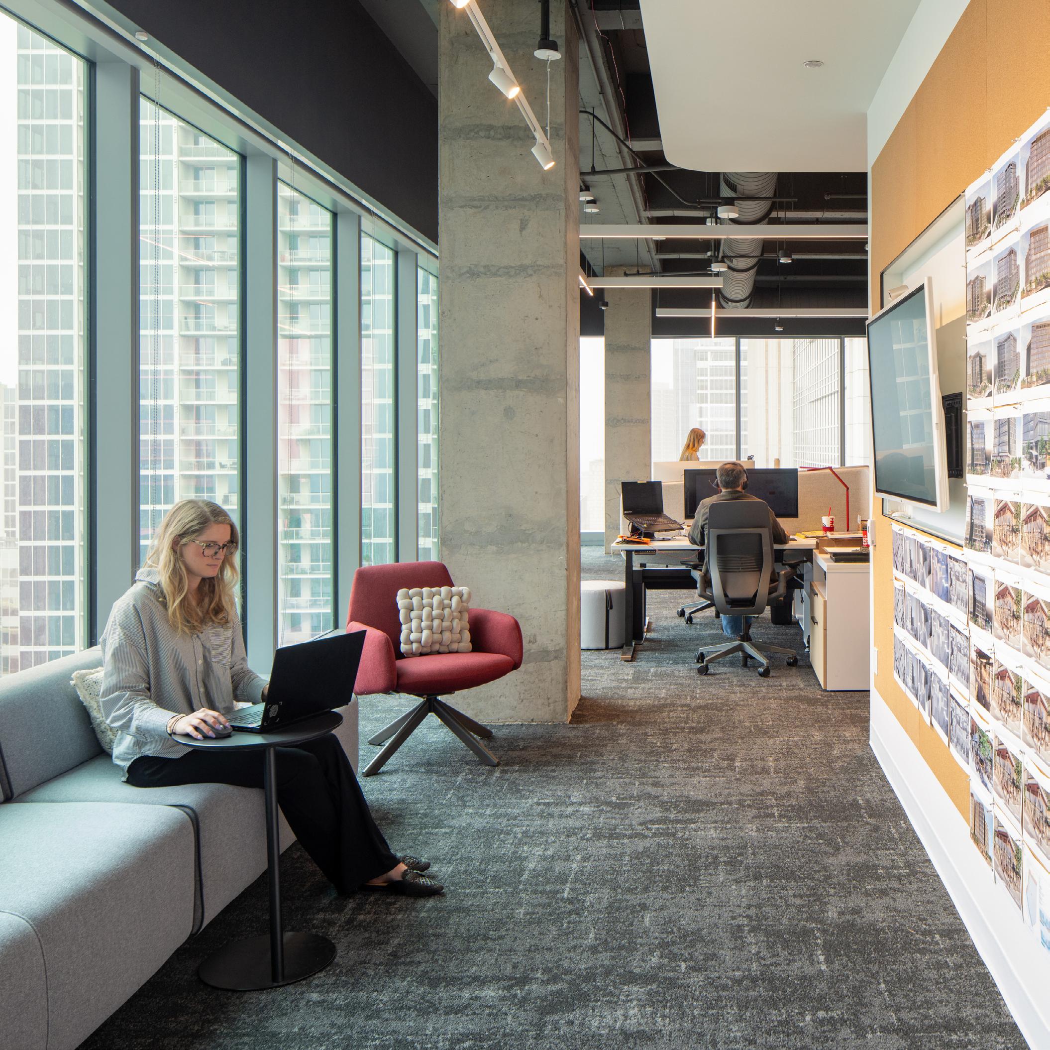 The new office was designed to support flexibility, energy, and connection. Bringing this new vibe into the state-ofthe-art new space required changing some entrenched habits and invisible norms around personal space, movement, and collaboration. Wil spent a lot of time preparing people for the changes, memorializing the good times in the old space, and counting down the days to build excitement. (The countdown also provided important milestones for clearing clutter and handling logistics.)