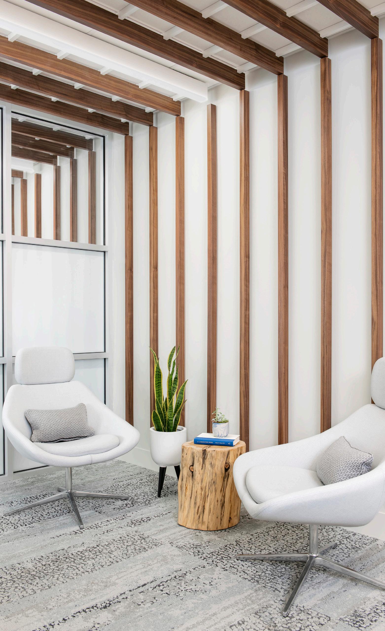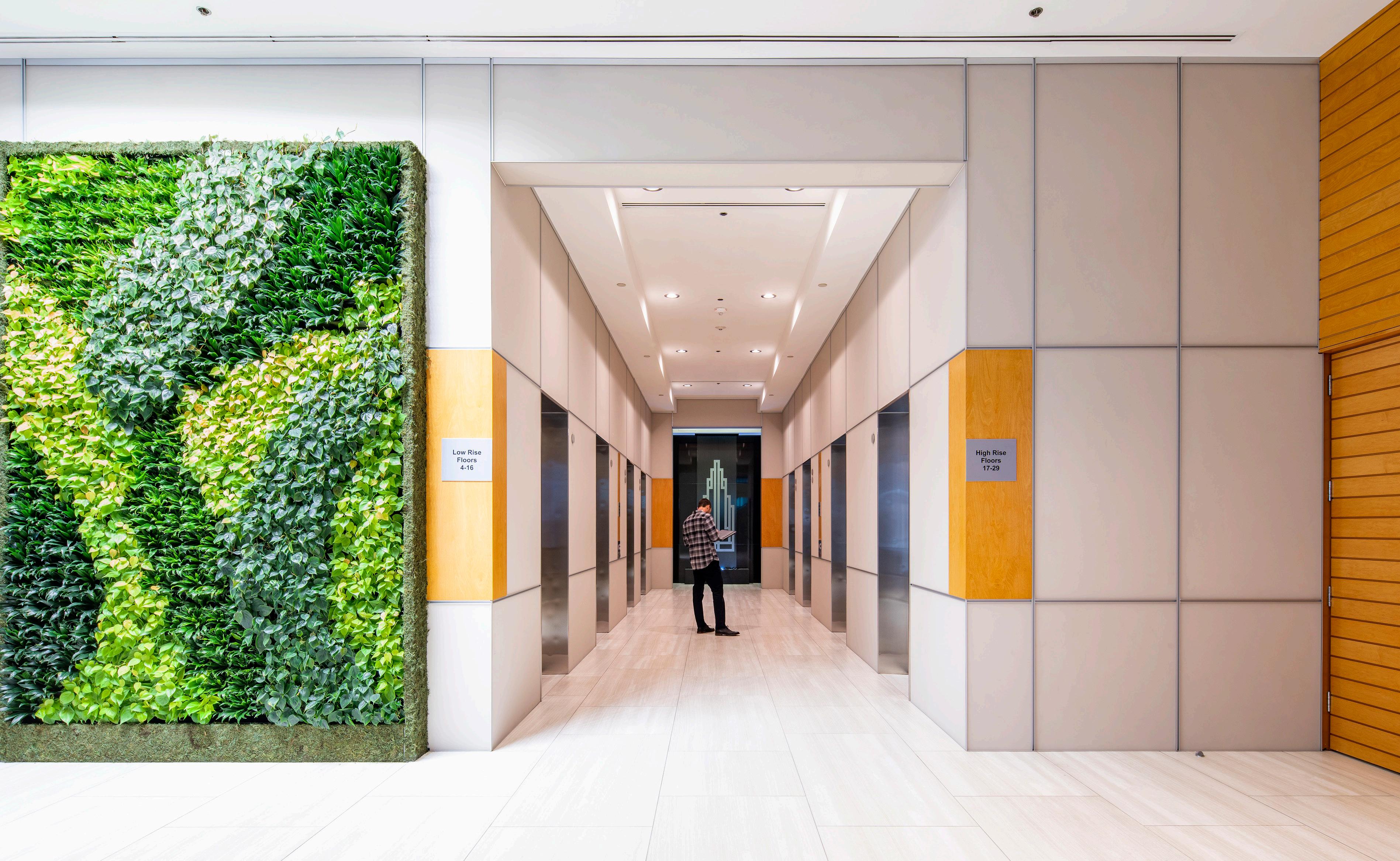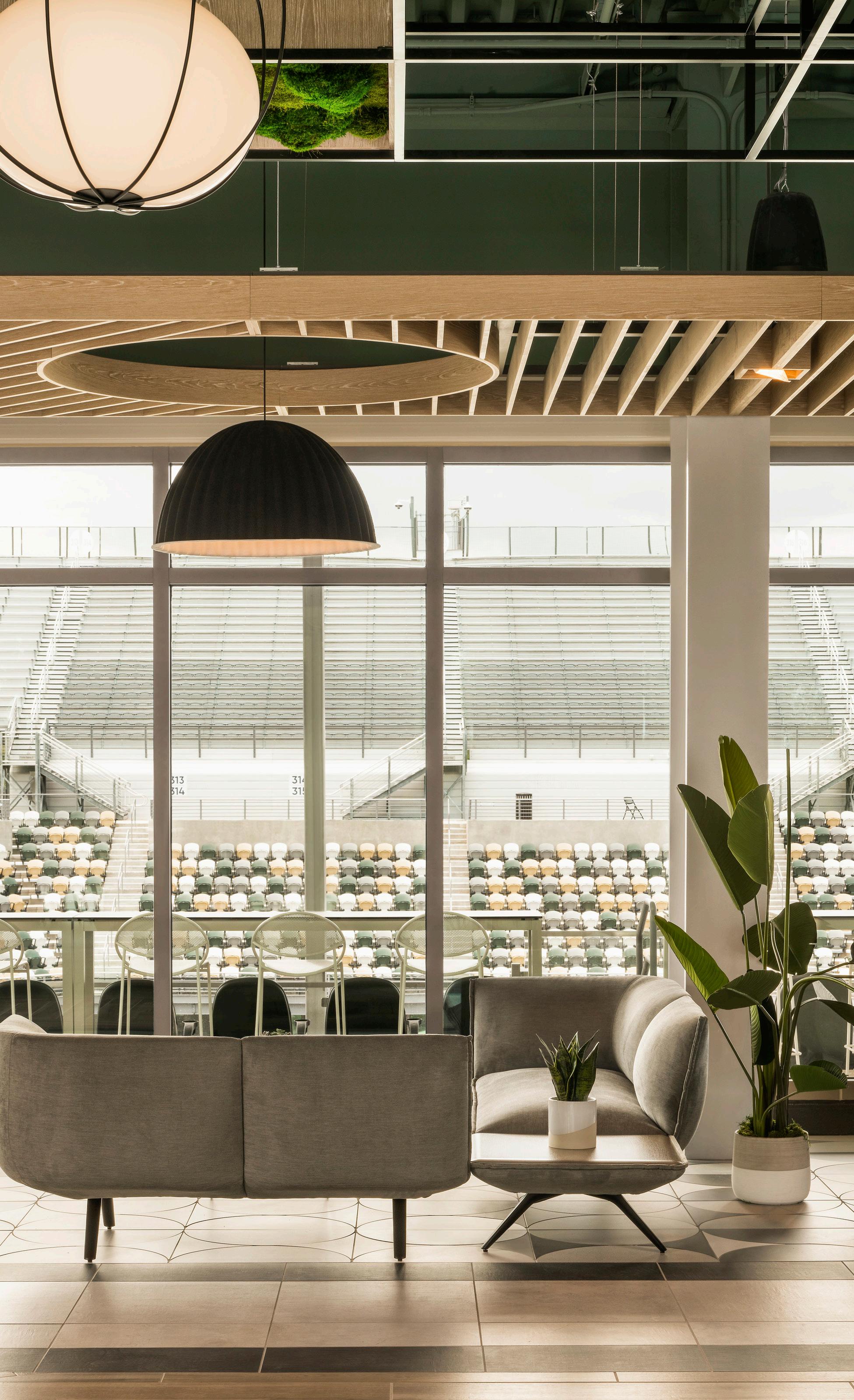 The purpose of this “Materials Champion” role was to empower designated people in each office to take responsibility for identifying pledgecompliant materials across our 12 materials libraries. We try to have two Champions for each office, one from the interior design side focusing on interior materials, and one from the architecture side focused on exterior materials. That distinction is important because exterior materials—concrete, brick, glass—are physically larger and harder to manage, but they’re also critical to the environmental impact of our projects.