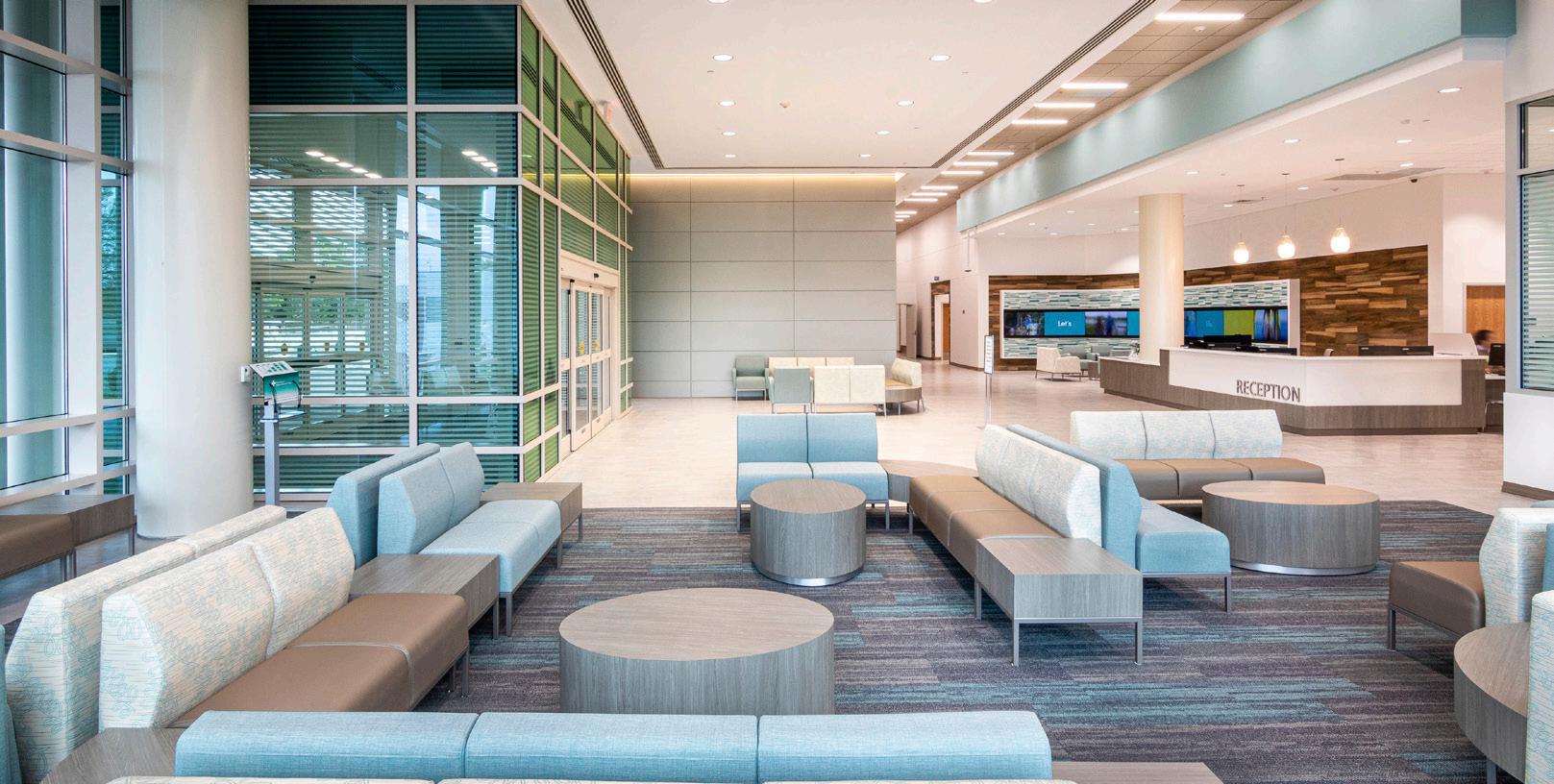 The New Hanover County Regional Medical Center Inpatient Addition is focused on patient-centered care. A “neighborhood” layout supports efficiency for caregivers, and patient rooms have family spaces and hallways designed for gentle exercise post-procedure.