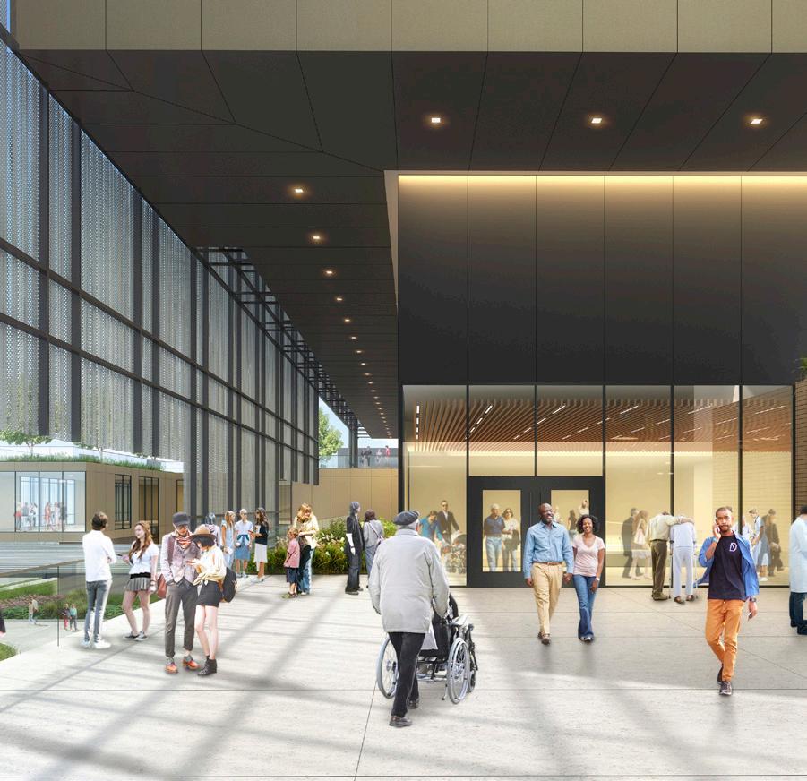 In terms of patient experience, the concept incorporates biophilic design principles to establish views and connections to nature. From the initial approach to the building, the design reduces patient stress through attractive native landscaping, sheltered exterior spaces, uninhibited views in and out of the building, soft edges, and a beautiful façade for visual interest. Patient rooms are designed for optimal efficiency for providers and better healing for patients. The building form supports the necessary choreographed rigidity for critical spaces while allowing flexibility and creative massing in public, communal, and patient support spaces.