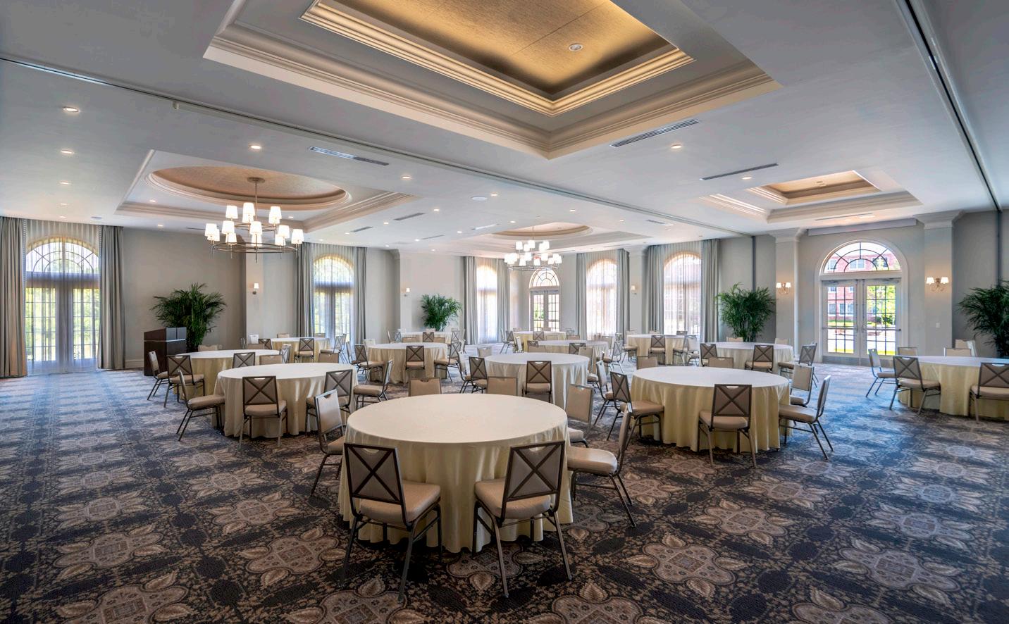 This 4-star, 80-room boutique hotel is nestled within Elon University’s botanical gardens and is designed to blend seamlessly with the Colonial/Georgian Revival aesthetic of the existing campus. The interiors are timeless, classic, and polished, but also embrace contemporary elements to create a memorable guest experience. The materials palette is elegant and neutral with accents of the University’s branded maroon color. The exterior materials palette of brick cladding with white columns and expansive windows also includes residential references such as patios and awnings to distinguish the Inn from the academic buildings. Program spaces include a restaurant, bar, meeting facilities, and ballroom.