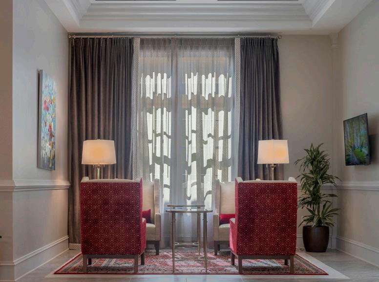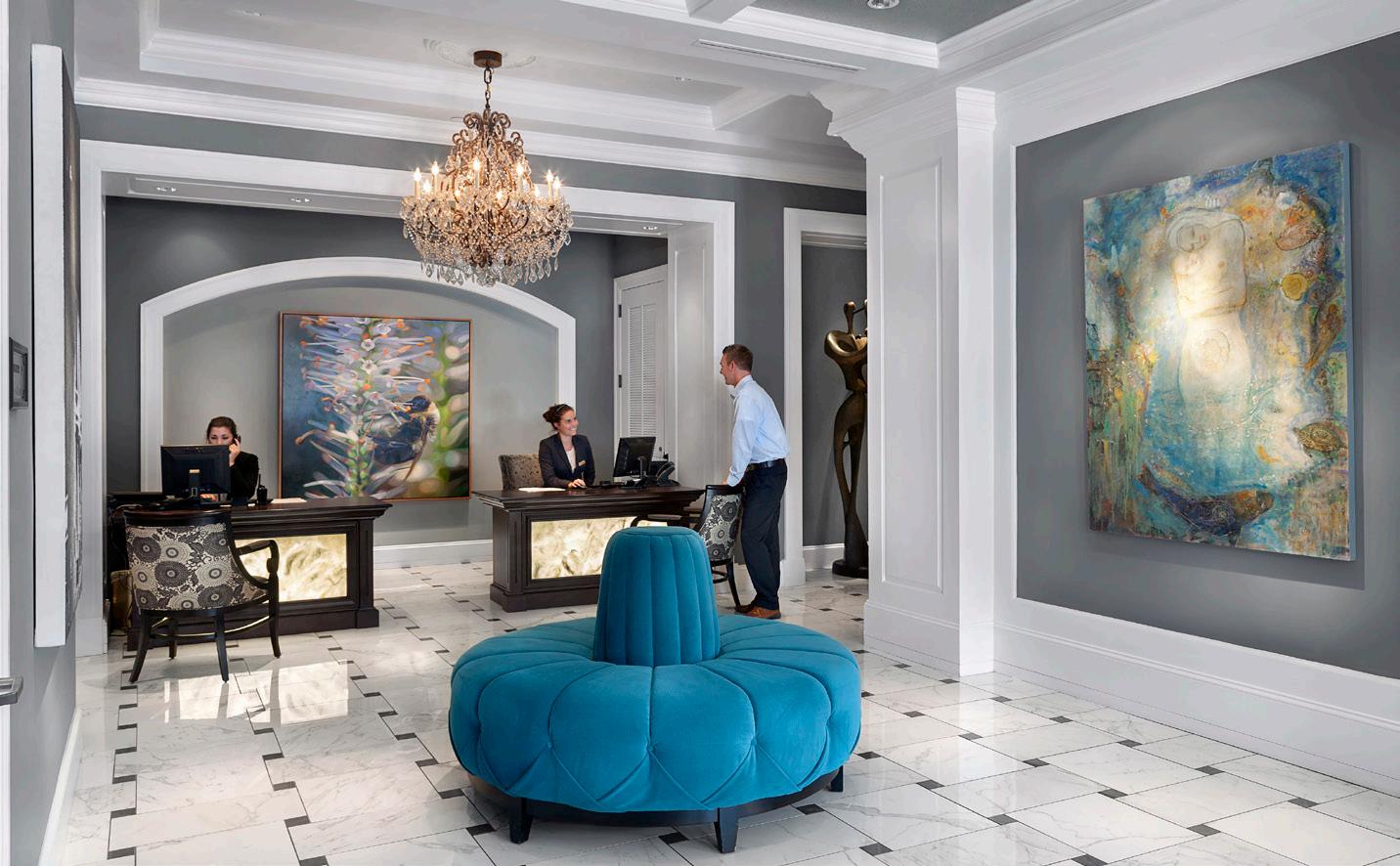 The design for the Spectator Hotel began with the goal of creating the best hotel in Charleston. Every detail, from the timeless exterior to the luxe interior finishes, was crafted to create an extraordinary guest experience. Forty-one luxurious guest rooms with ten different furniture settings provide rooms tailored to the needs of all guests. Suites have stunning framed city views, and even the hallways, which are accented with mirrors, art-filled niches, white wainscoting, and deco sconces, feel like special spaces.