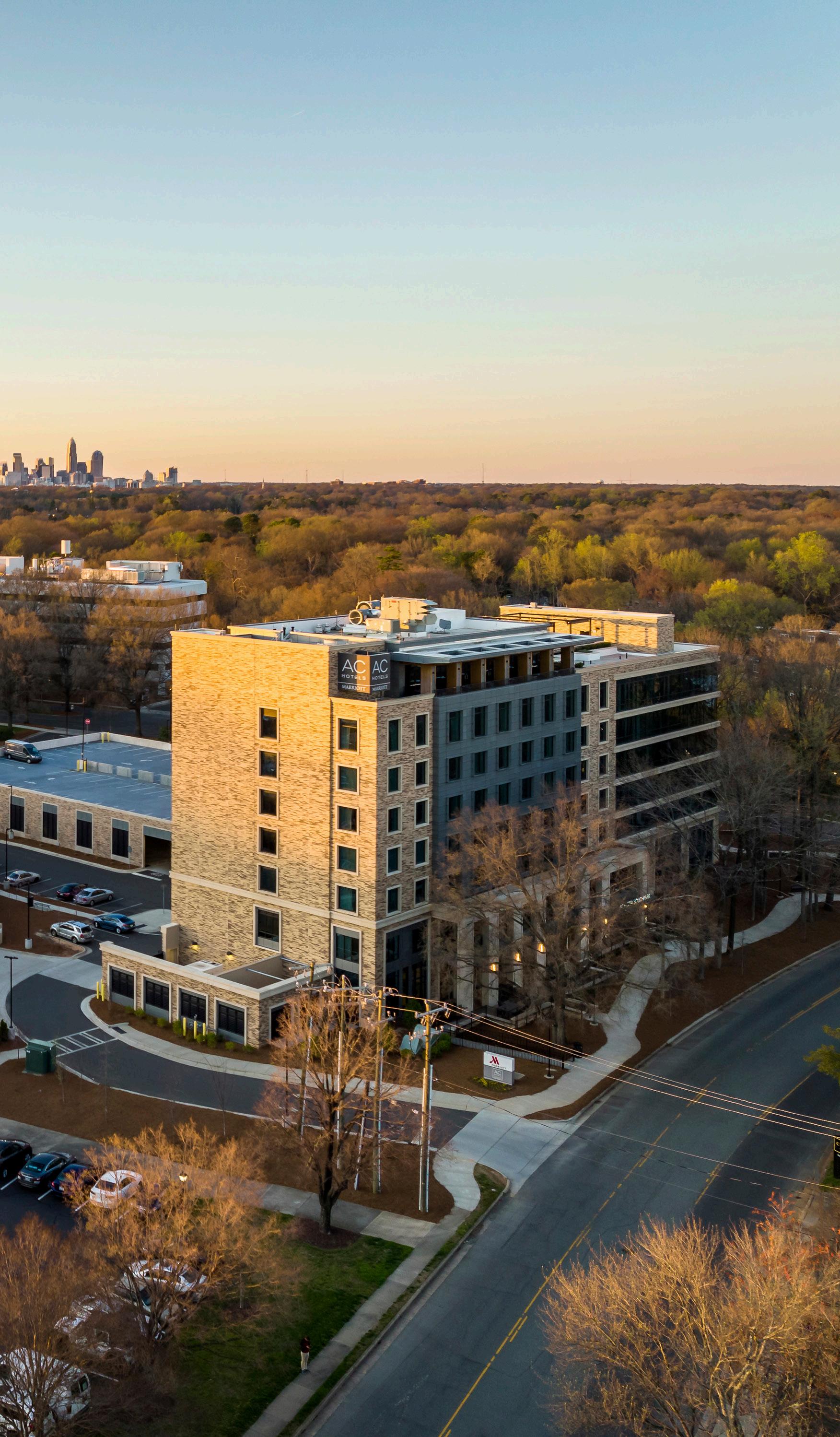 This branded hotel lies on a seam between a suburban neighborhood and Charlotte’s bustling South Park commercial area. Stitching together these two identities in a way that was beneficial to both became a key design driver for the client, design team, and community. Through an intensive and interactive town hall process with community stakeholders, a series of meetings to bring in the diverse voices of local residents generated invaluable feedback and informed the final design.