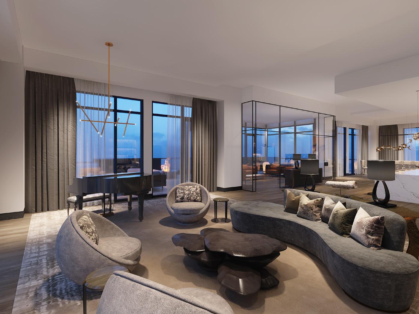 The design team took advantage of the prime downtown setting, framing expansive skyline views and bringing natural light into the interior spaces.