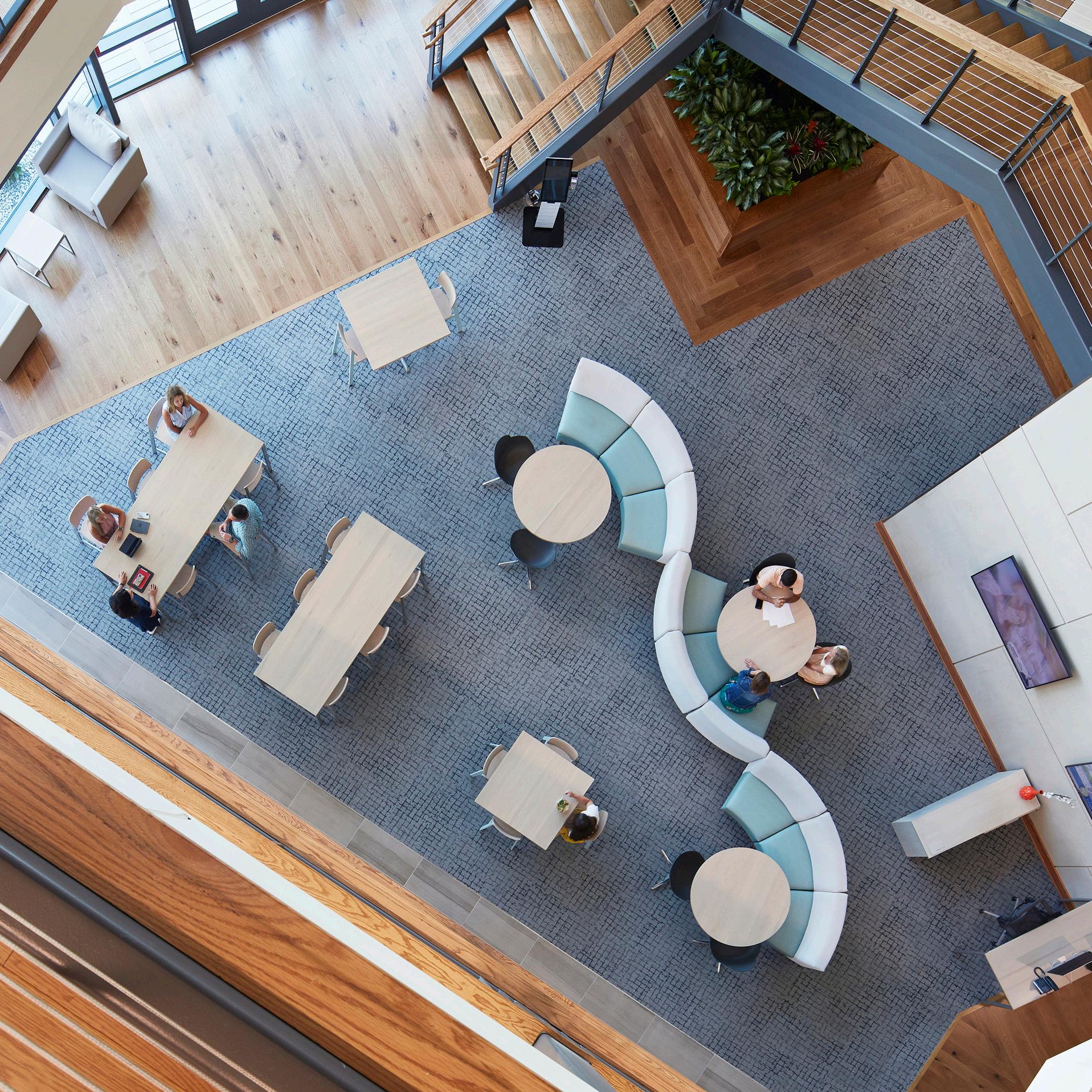 MAXIMIZING EXISTING SQUARE FOOTAGE. The first step towards making better use of existing space is an accurate, detailed space inventory in addition to other data. Qualitative tools like user surveys and quantitative tools like occupancy sensors help to identify hot spots or underutilized areas that may be better programmed for other uses. They can also provide a “day in the life” of the space to understand high use times of day or week which may be useful when factoring for hybrid workers.