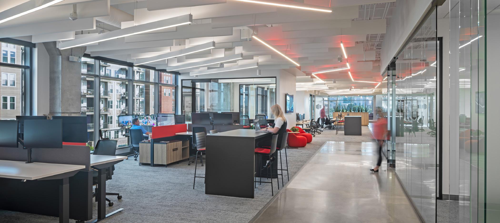 LS3P worked with a multinational technology company with a hub in Cary, NC to reimagine the function and purpose of the office. The company, looking to adapt to the “new normal” of hybrid work in the wake of the pandemic, needed to rebalance its workspace to better accommodate focus, collaboration, wellness, and evolving technologies.