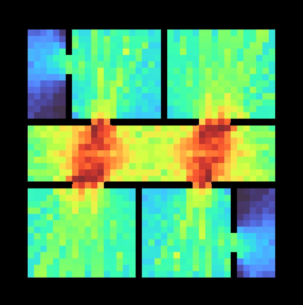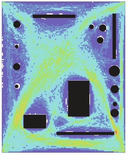 A measure of the density of radial lengths in different directions. Areas of high skewness represent perceived corners and edges of space5.