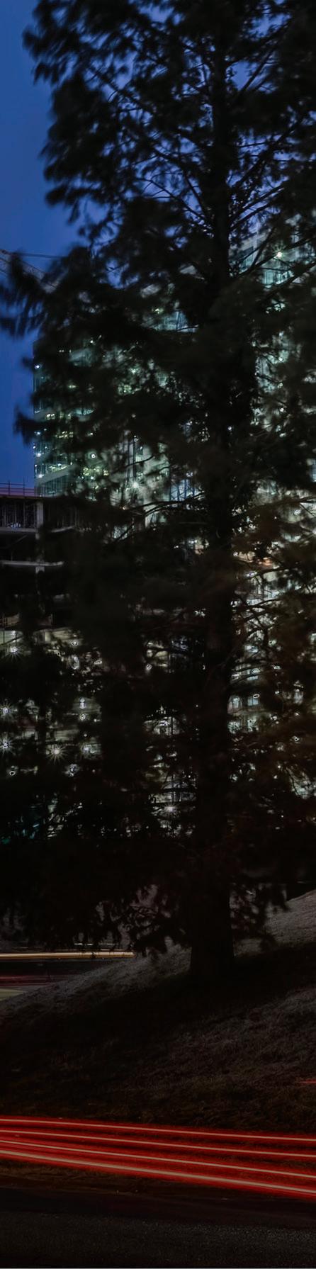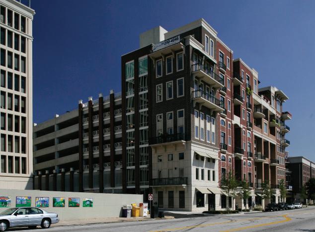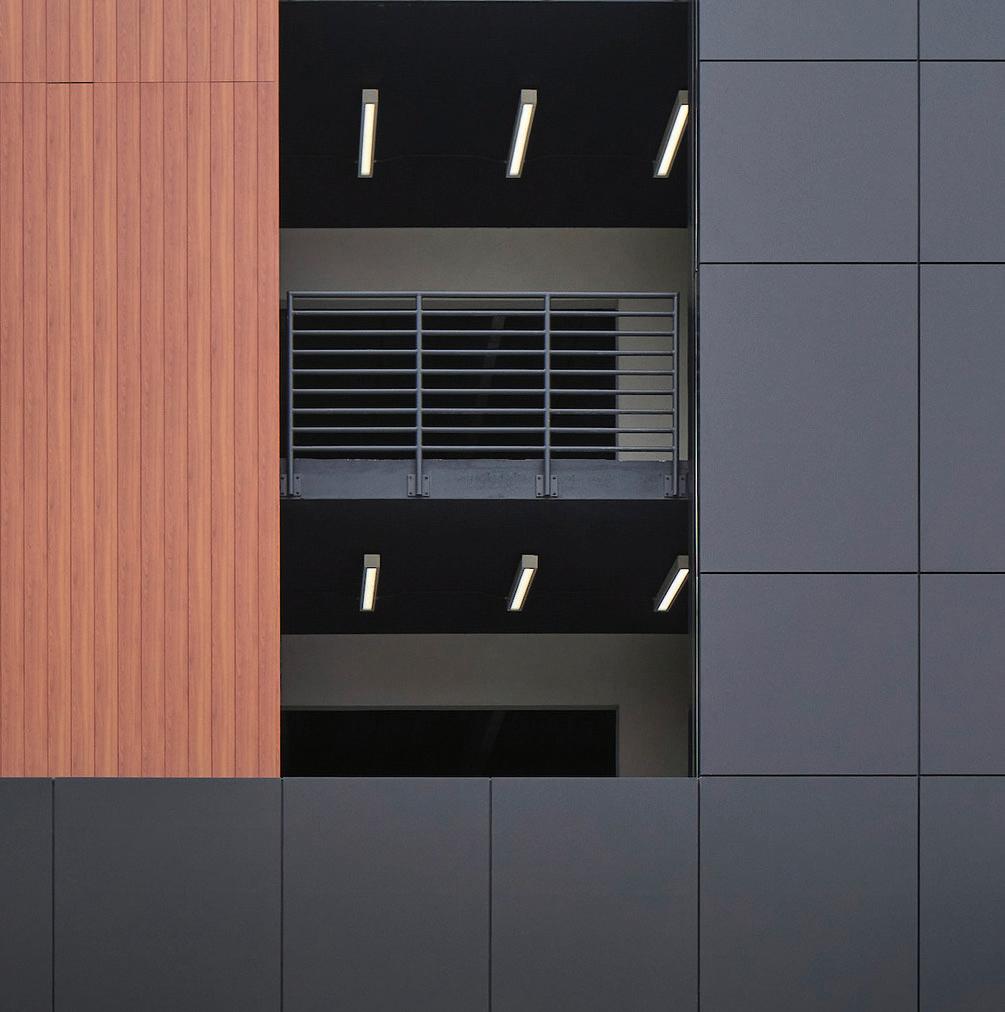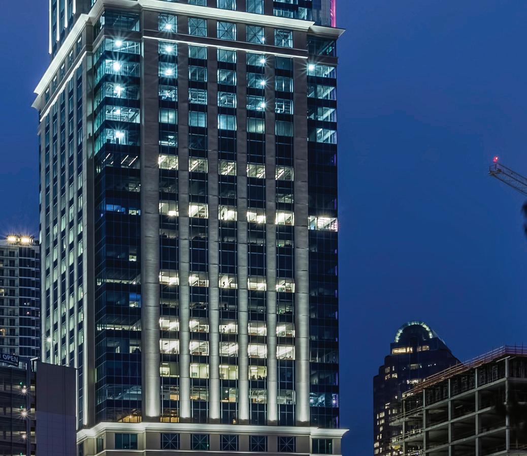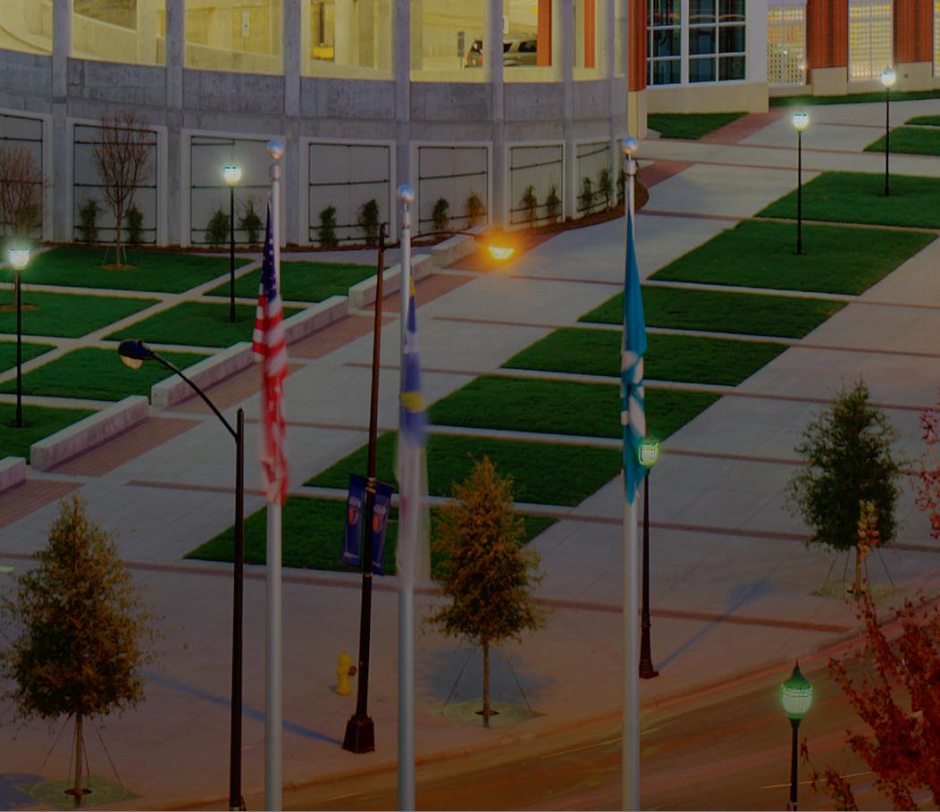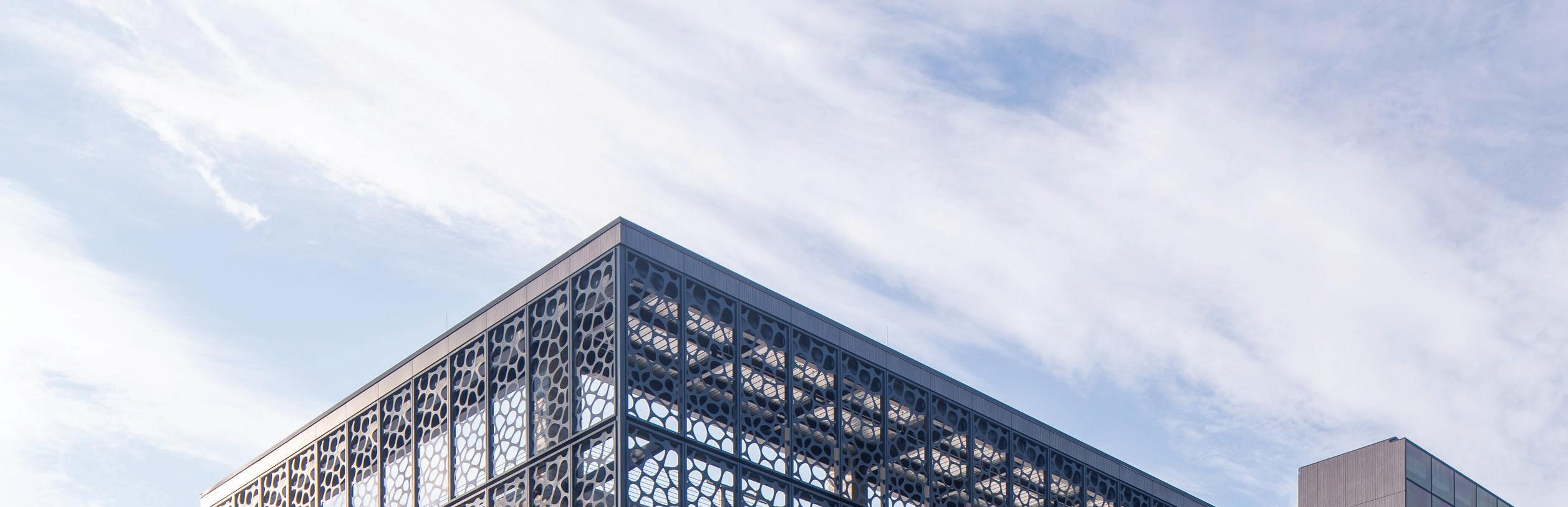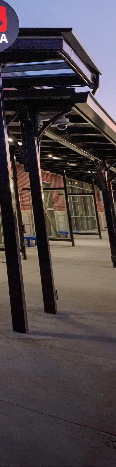 Center City Green is a 12-level, LEEDcertified parking garage offering 1,400 spaces in a compact, high-density urban setting. Located on a uniquely shaped two-acre site bordered by public streets, a light rail line, and major cultural landmarks, the garage is designed to integrate seamlessly into its surroundings. Ground-level retail activates the street edge, enhancing the pedestrian experience and supporting local commerce.