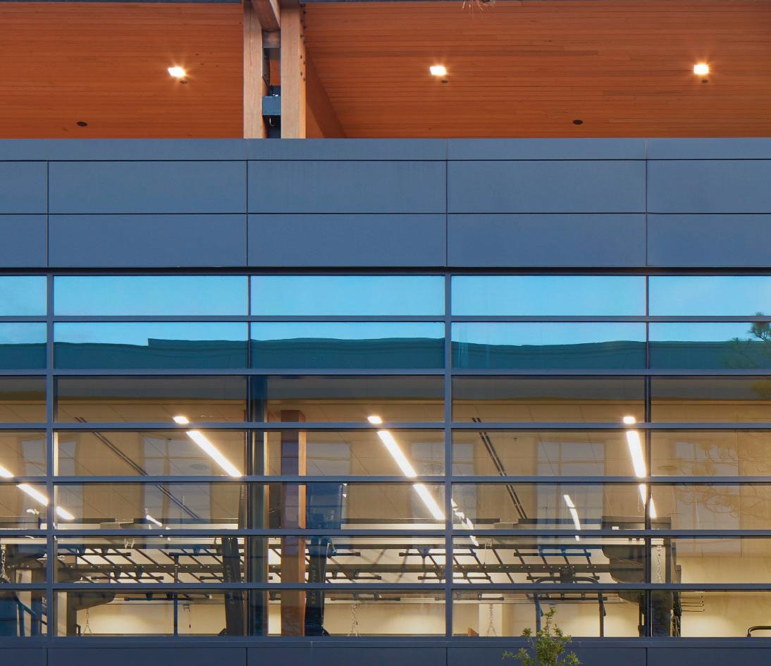 This hybrid fitness and parking garage supports a growing corporate financial campus with 600 parking spaces and a wellness center, unified by a contemporary palette of wood, steel, and glass. Sustainability, connectivity, and transparency drive the design, which reimagines the traditional parking garage as an active, integrated part of the campus.
