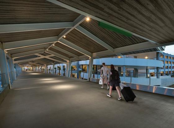 Integrated technology reduces traveler stress and enhances convenience. In addition to clear signage and graphics, creative lighting at stairwells highlights vertical circulation to support intuitive wayfinding. The design preserves the airport’s friendly, accessible character while accommodating future growth in capacity and parking demand.