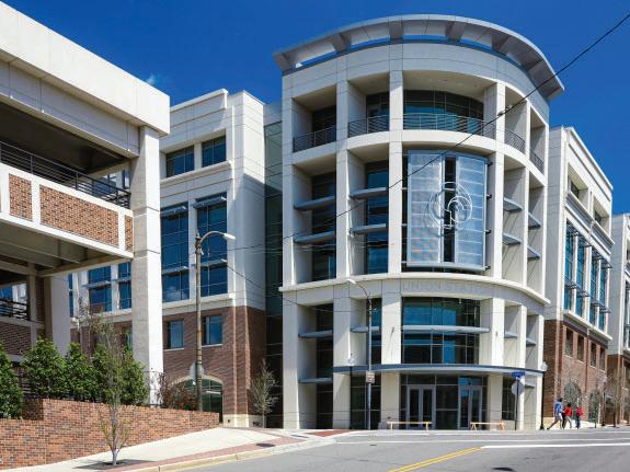 Drawing from extensive experience in urban and mixed use development, LS3P proposed that this parking deck be configured to facilitate shared sitedevelopment with residential/retail buildings at the Washington Street and McBee Street ends of the site. This strategy offers immediate financial return to the City through private residential investment while allowing the design team to create a unique architectural facade on the Spring Street side of the building.