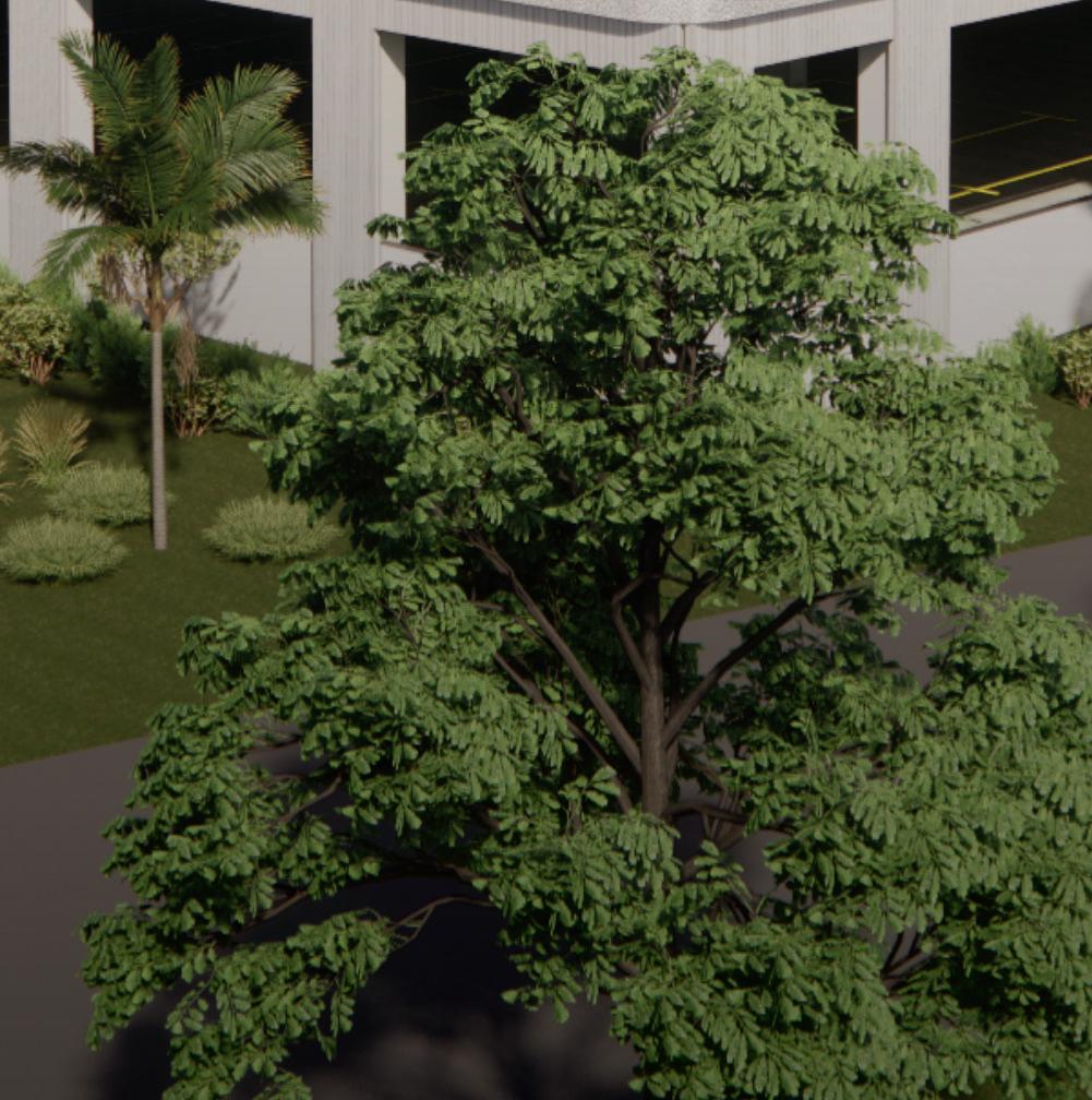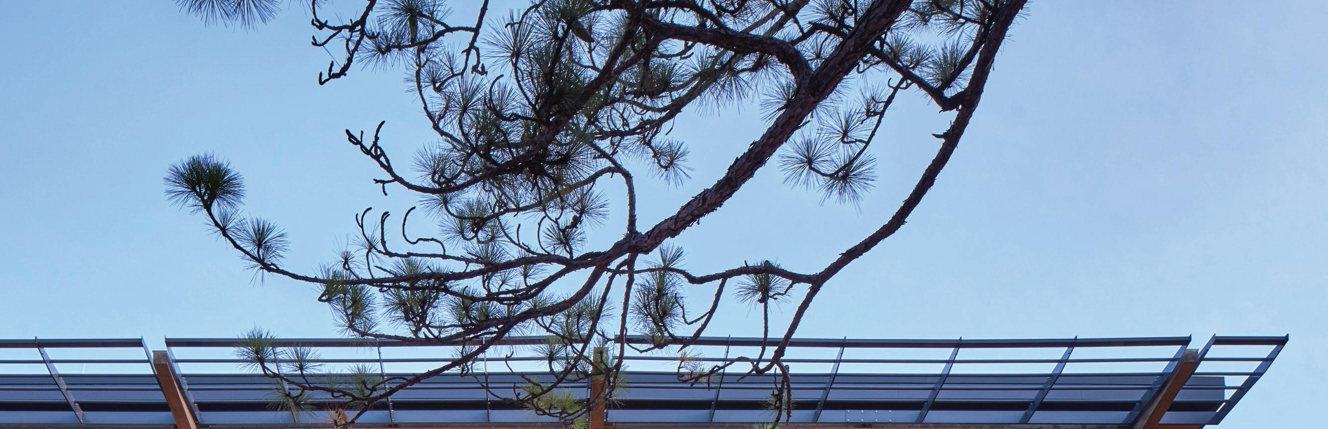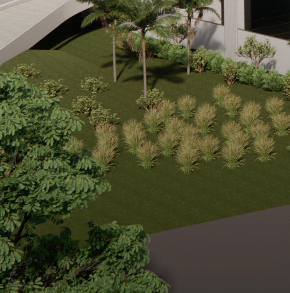 The fitness component forms a dynamic façade, buffering adjacent buildings while promoting movement and wellness. Inspired by the verticality of longleaf pines, the structure’s form and materials reflect the natural site.