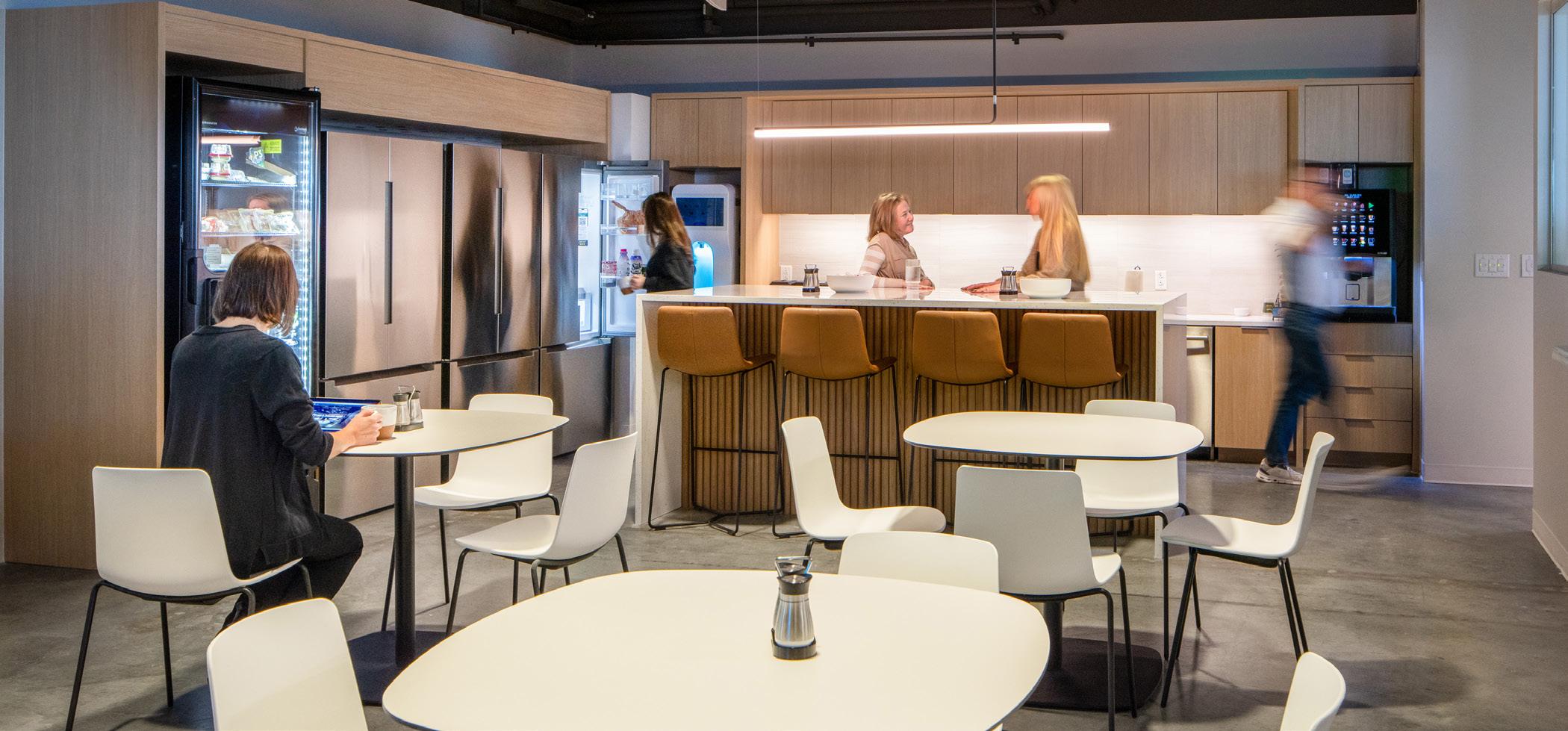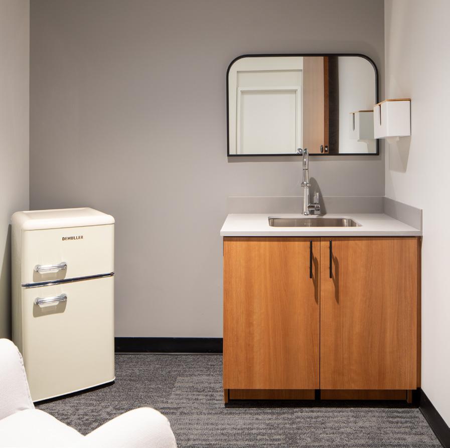 Designing for wellness continues at the programming stage. The program should account for the right size and mix of spaces to support a variety of wellness components. These might include wellness/respite rooms, mothers’ rooms, kitchens, break rooms, and bike rooms with showers. Note that many of these areas require plumbing and other infrastructure, so tacking them on as an afterthought becomes expensive and inefficient.