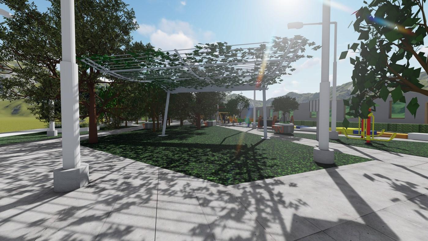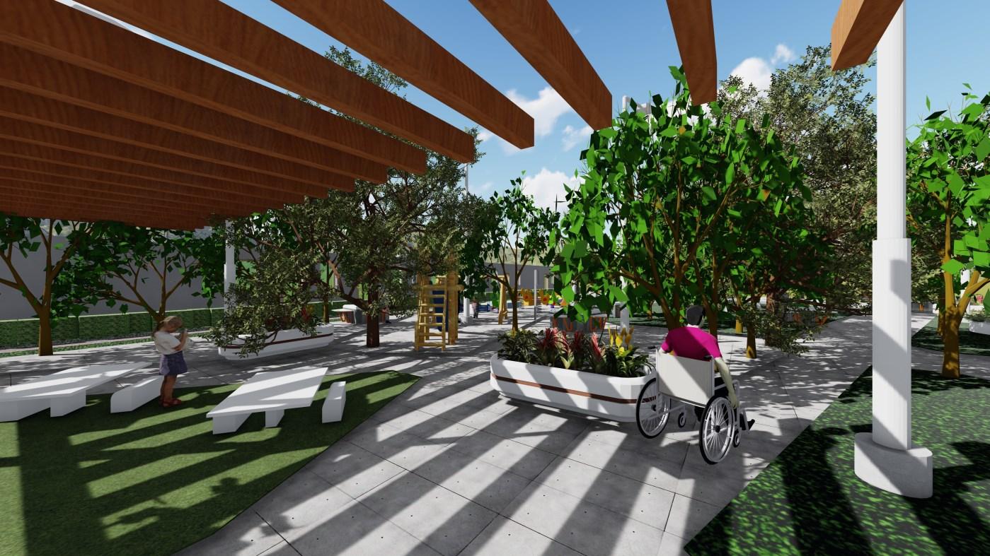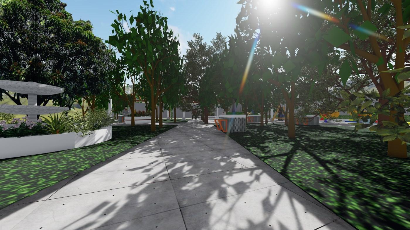 Rediseño del Parque Comunitario Central de la Ciudadela “Colinas del Maestro”, su propósito es el esparcimiento de moradores y estudiantes de la UE aledaña. Distribución de zonas de acuerdo con las necesidades del usuario, con zonas de actividades recreativas, culturales y sociales