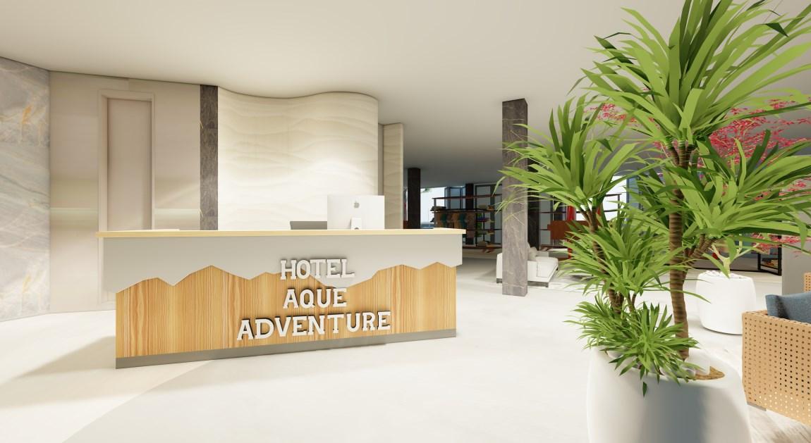 Rediseño interior de hotel en Montañita, Santa Elena con propuesta de sursfshop como actividad comercial Intervención en las 4 plantas, el concepto busca generar experiencia sensorial a través de la materialidad, acabados y formas.