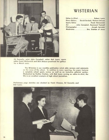 a complete school sports review as well as an instuctive editorial section. Moderated by Brother Gratian, with Bob lyons serving as editor-in-chief, the Wis is an excellent example of high school journalism.