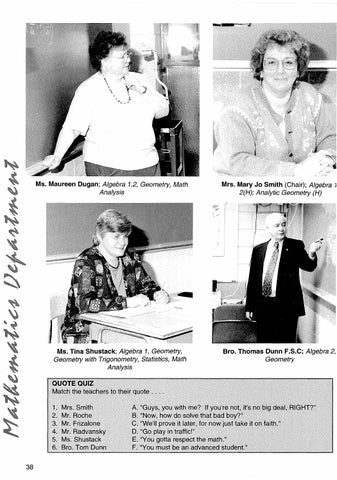 Mrs. Smith Mr. Roche Mr. Frizalone Mr. Radvansky Ms. Shustack Bro. Tom Dunn