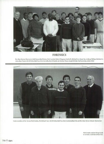 FORENSICS Bro. Rene Sterner, Director, La Salle Forum, Basil Nation, Nick Crawford, Roberl Chapman路Smith, Mr. Michael Carr, Ruem Tan ,Anthony Phillips, Nicholas Covolus, Ryan Travers, Pal McNeela,Matl Pace, Chris Carvalho, Ben Fellmeth, Jon Veil, Karl Beyer,Joseph McPeak, Paul Gormisky,Andrew Britt