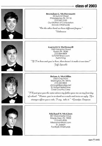 Michael N. McGinn 80 l Manchester Drive Maple Glen,PA 19002 215-643-4036 Mikeroman@aol .com St.Joseph Football, lntramurals