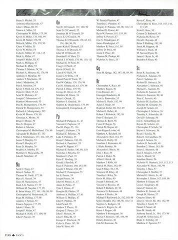 00 Neil E. O'Connell. 177. 180.99 Sean D. O·Connel1. 55 Jonathan M. O'Connell, 39 Kevin E. O'Connell, 39 Thomas E. O·Donnell. 178.63.65. 174.184,96.98 Jumes Kyle O·Donnell. 55 Thomas J. O·Donnell. 55 John M. O·Driscoll. 39 Brendan D. O'Hara. 55 Patrick J. O·Neil1. 178.98. I 10. I II Michael G. O'Neill. 55 Croig J. O'Neill. 47 Kevin O·Neill. 39 Liam P. O'Neill, 39 Justin L. O·Pclla. 178 Daniel PeterO'Toolc, 55 Paul W. Oakley. 178. 174,98 Carla. Olejnic,mk. 63. 179.98 PatrickJ.Oline.179.99. George R. Oliver. Jr.. 55 Mllllhew M. Olson. 39 Brian J. Olsz.ak, 55 Matthew S. Onufrnk, 39 Stephen K. Ostopchuck. 179, 99 Kristopher R. Ostopchuck, 47